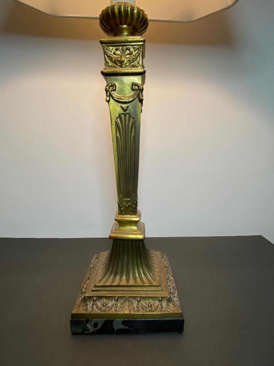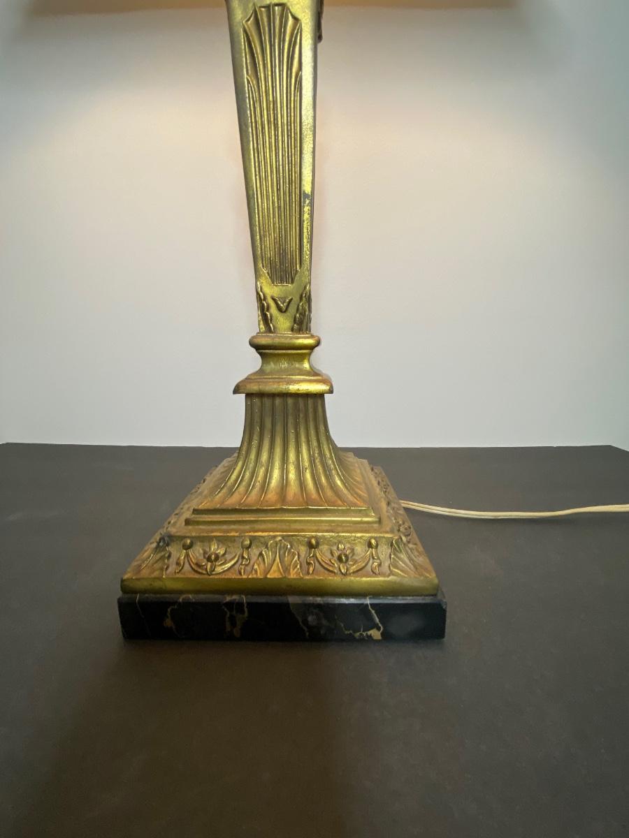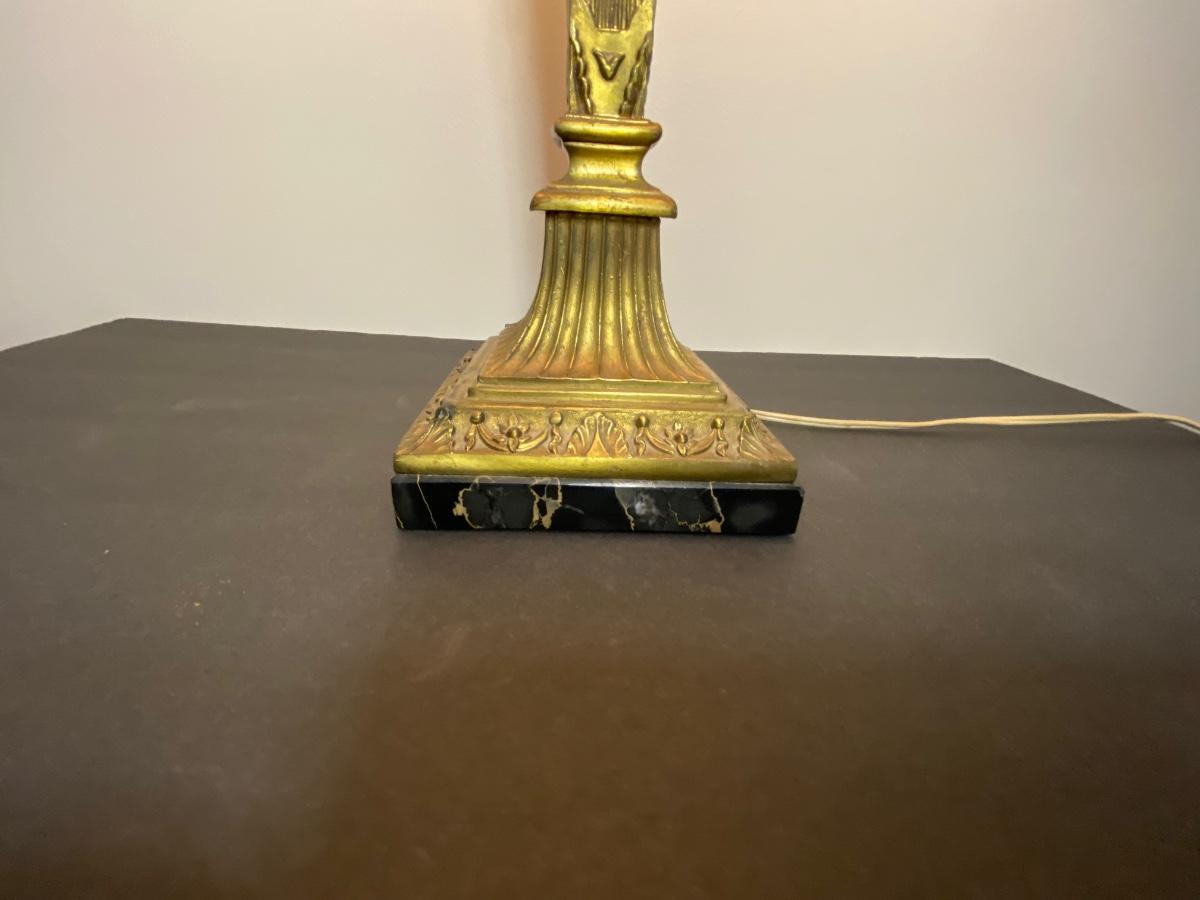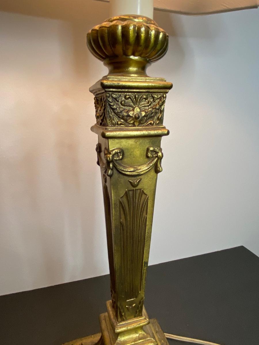 Beautiful gold vintage lamp with ornate details. Please see all pictures as they are the best representation of the items. The pictures show condition, measurements if taken, and what is included in the lot. Due to the large amount that we photograph and the time frame, we are not always able to take measurements. All items unless noted, are pre-owned and have been used. If you purchased furniture, you must bring help. We do not allow one person to carry large furniture out on their own. Bring help, tools and a truck for the safety of our client’s homes, and your personal safety. Company policy. Thank you.