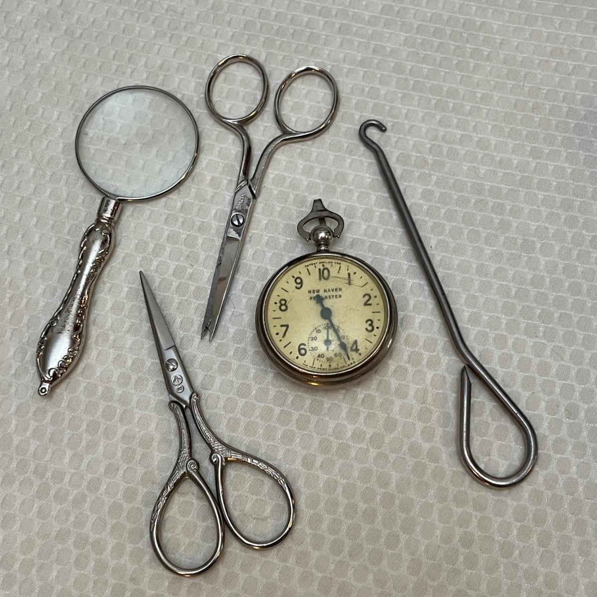 8. Sizes are approximate, you can estimate as our lot number signs are 3.5" long. Also we use an 18" & 36" measuring stick.  We try on certain things to do actual measurements. No guarantees on actual sizes, we try our best!