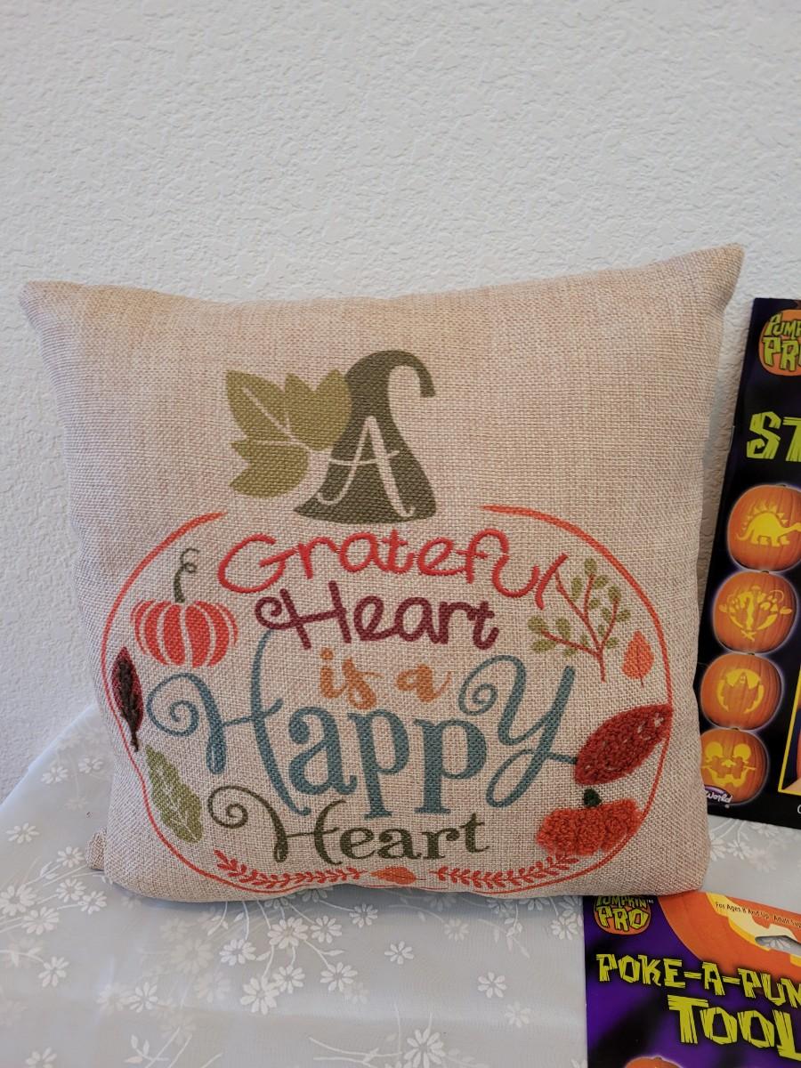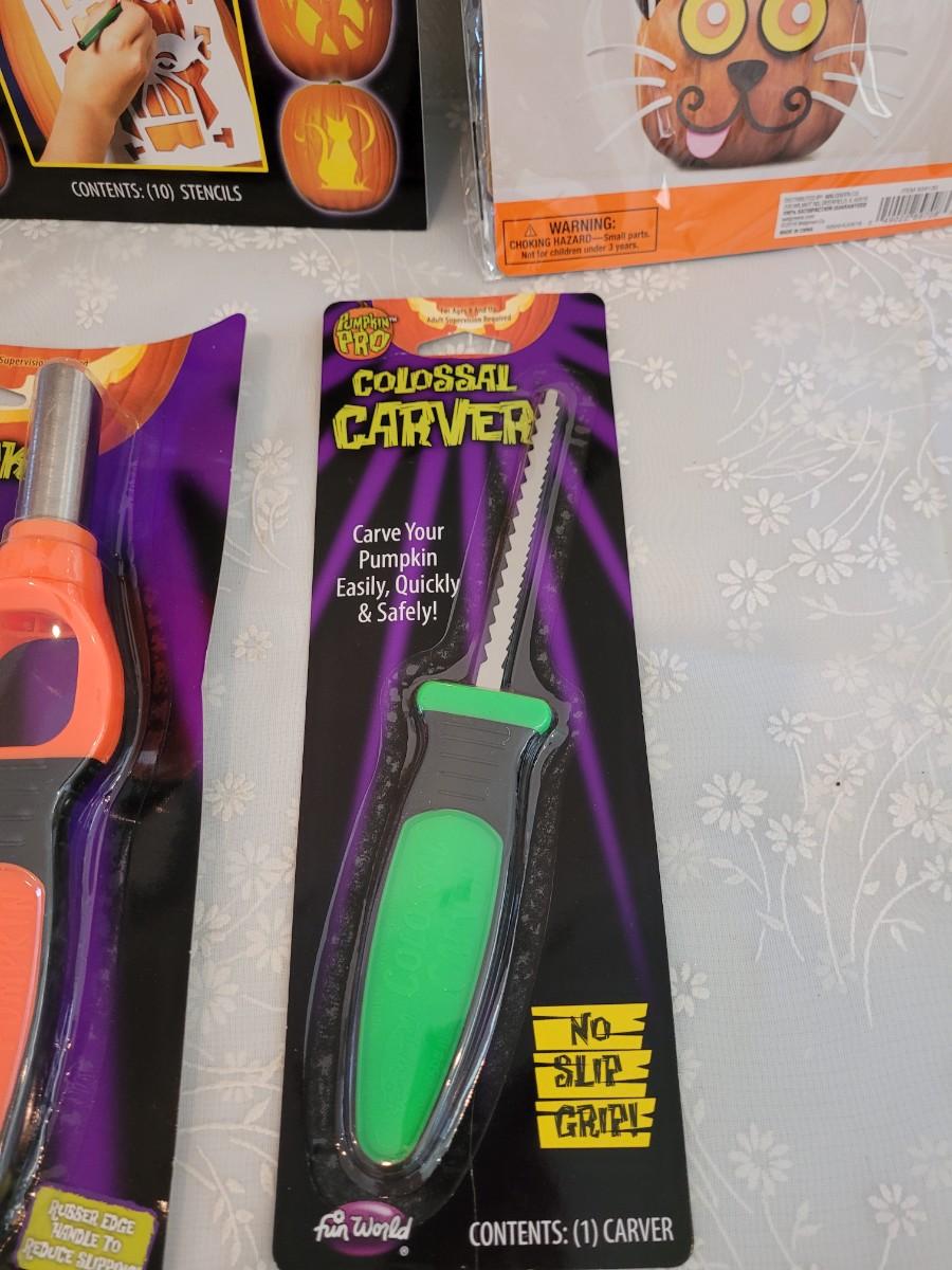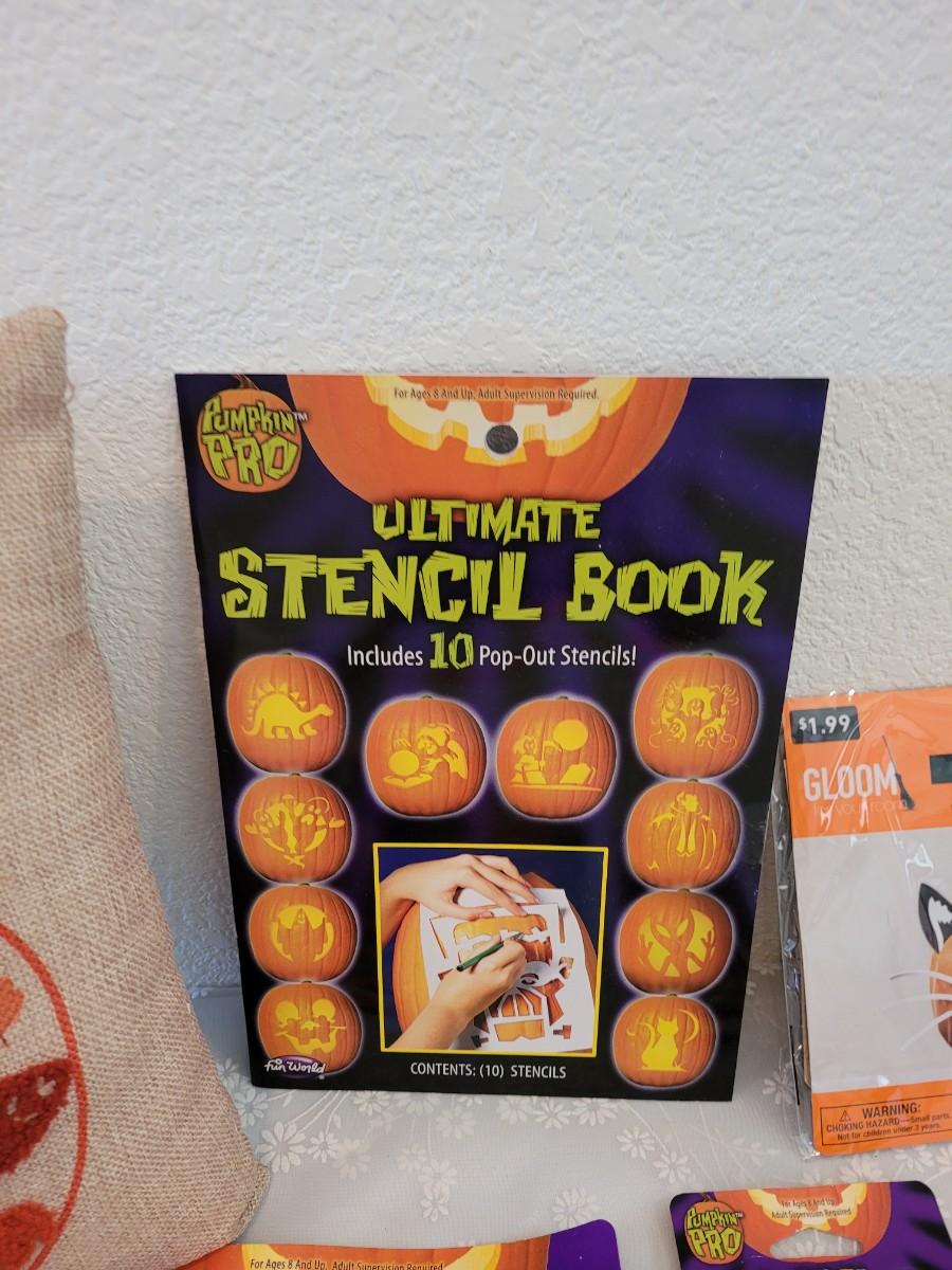 Lot 386: Fall Pillow, Pumpkin Carving kits, Stencils and Decorating Kit