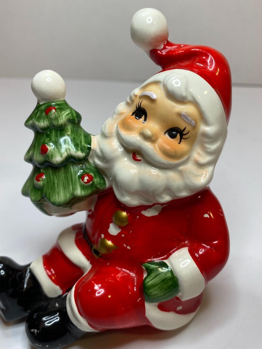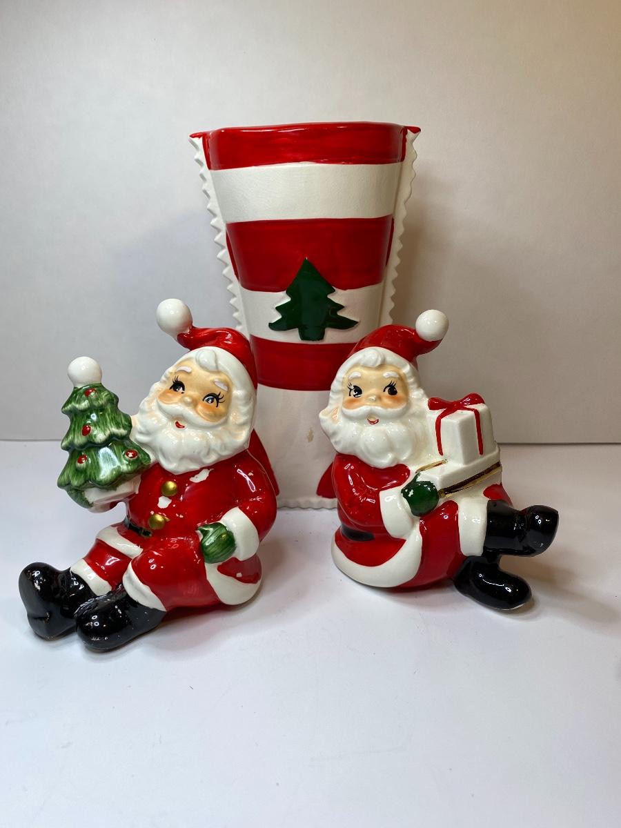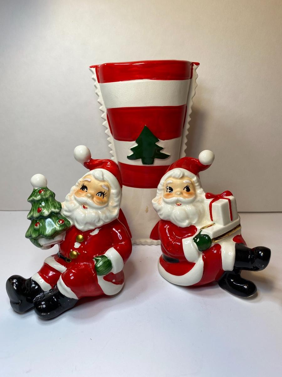 Lot 386: Vintage Christmas: Ceramic Santa's & Stocking Vase