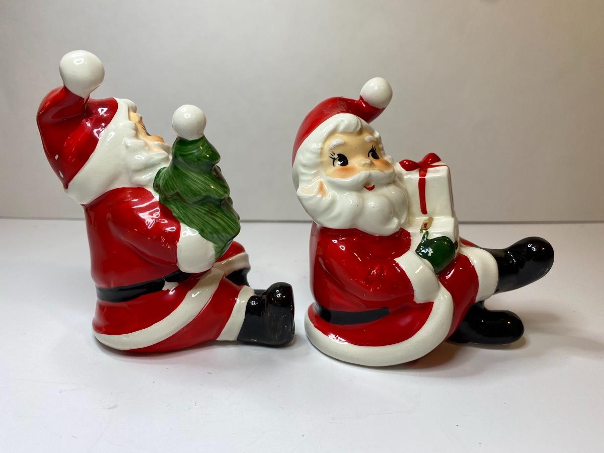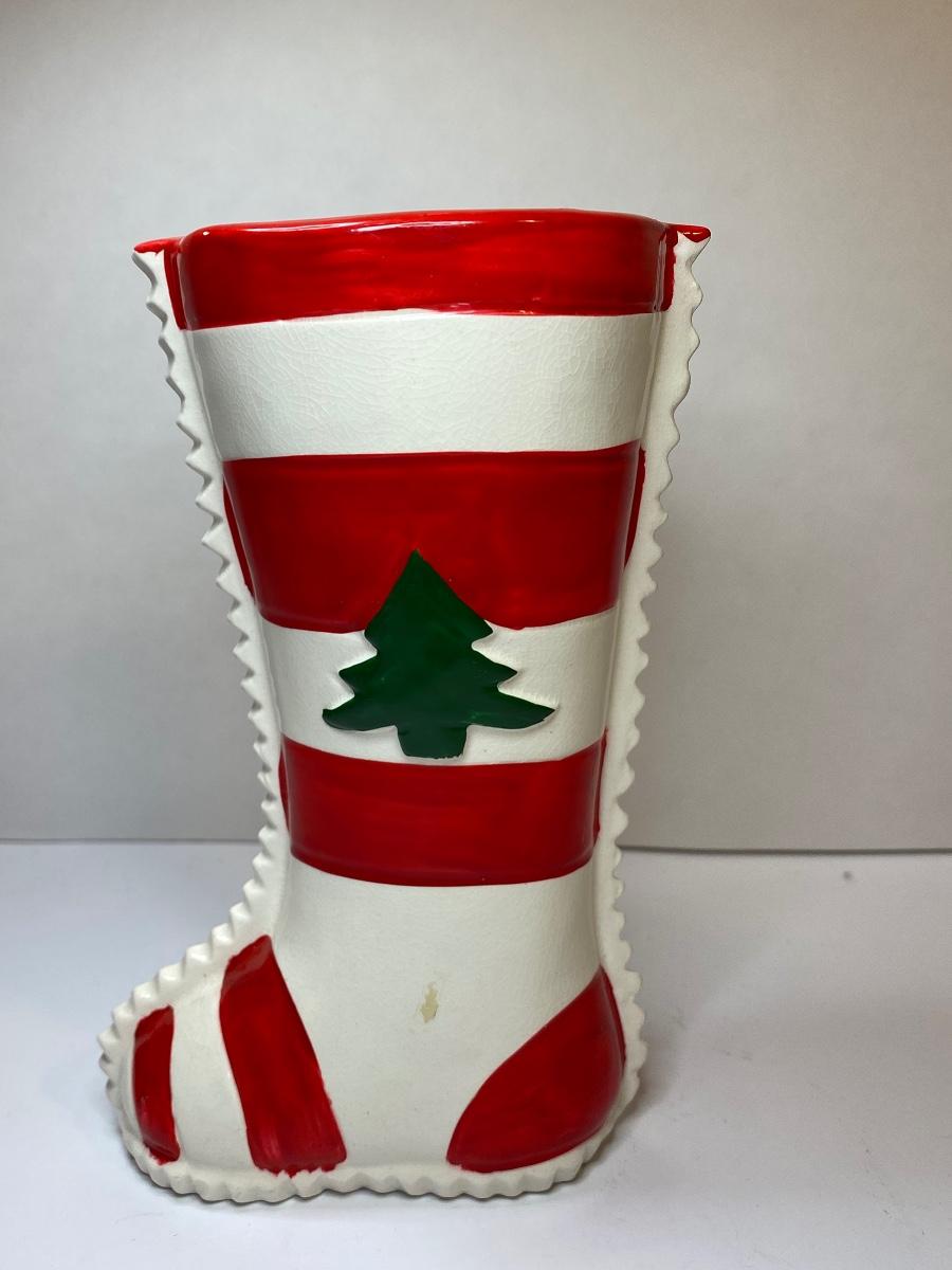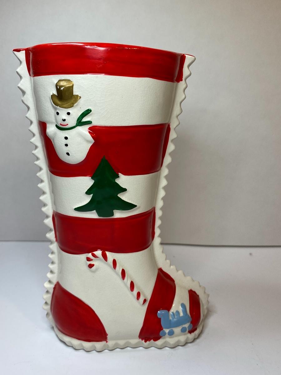 Lot 386: Vintage Christmas: Ceramic Santa's & Stocking Vase