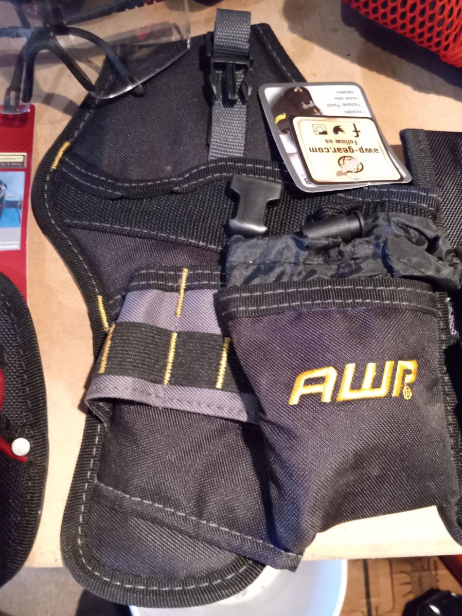 LOT 386 TOOL BAG, DRILL HOLSTER, TAPE MEASURE AND TOOL HOLDERS