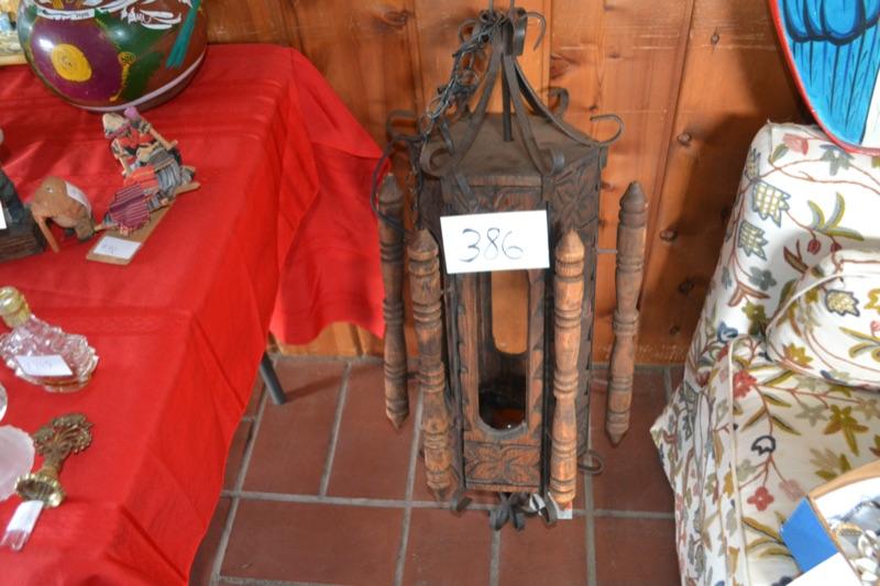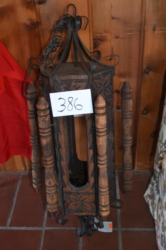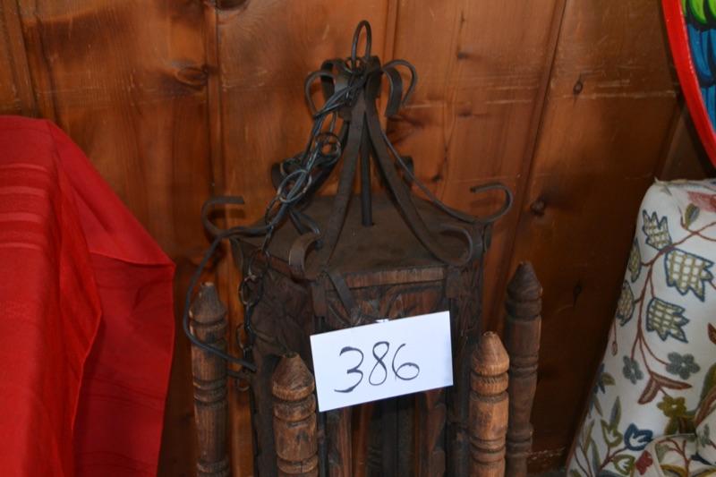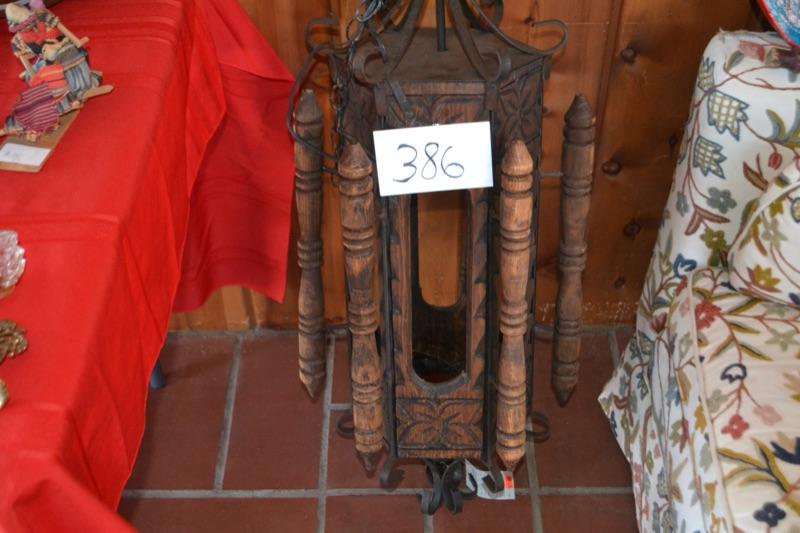 LOT 386 VINTAGE WOOD HANGING LAMP