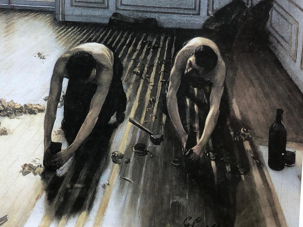 LOT 386G: Large Framed Print of "The Floor Scrapers" 1875 Artwork by Gustabe Caillebotte (French, 1848-1894)