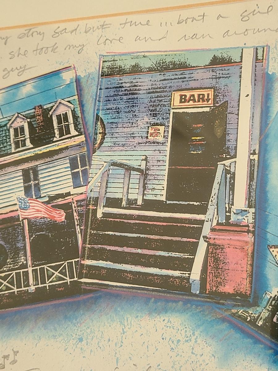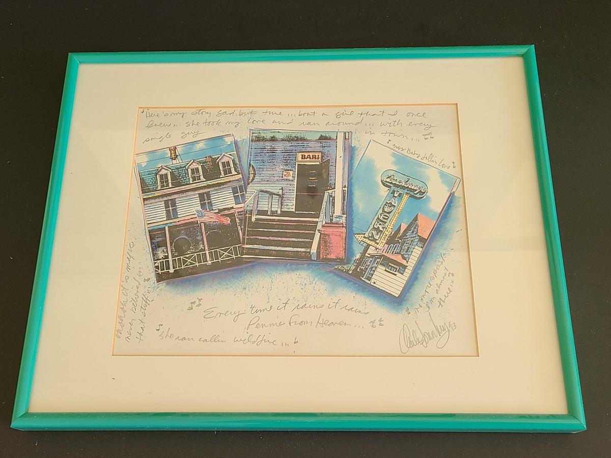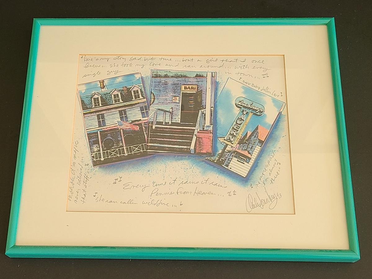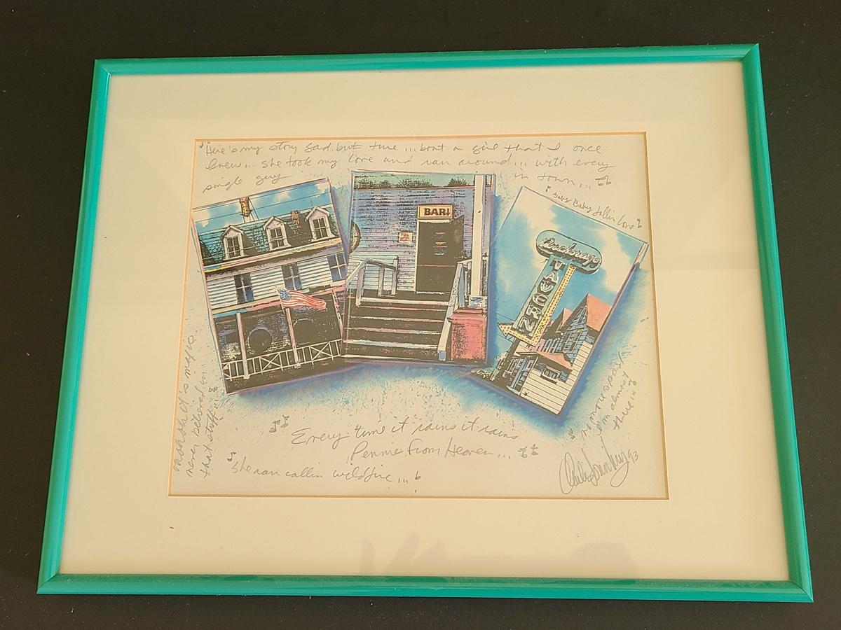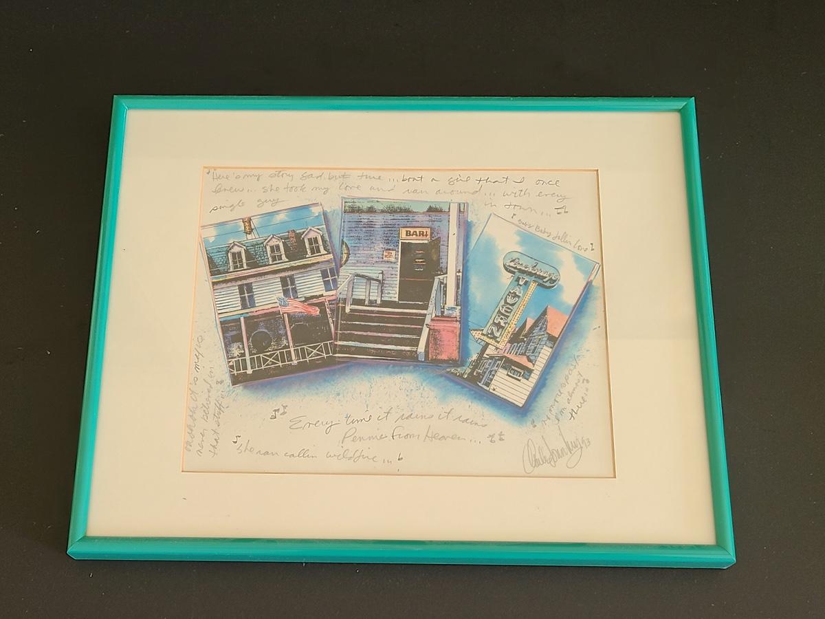 Lot 386U: Charles Lounsberry Signed Framed Artwork :Anchorage Tavern & Lyrics (Jersey Shore Art)