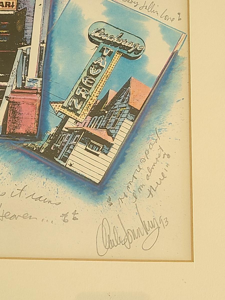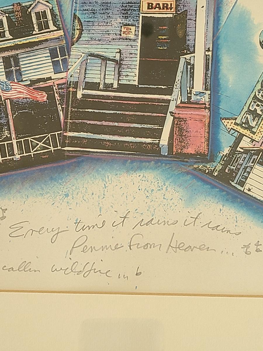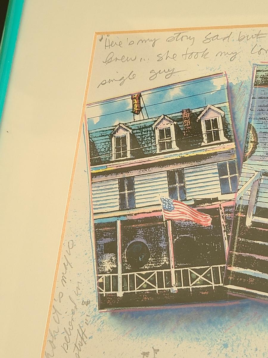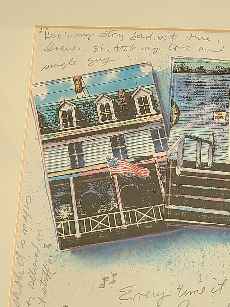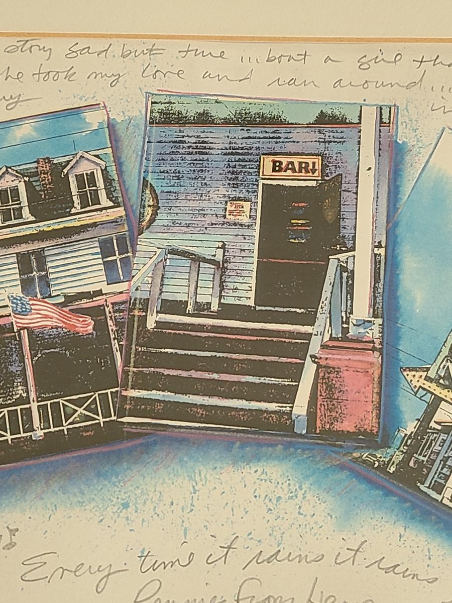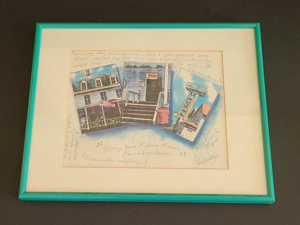 Lot 386U: Charles Lounsberry Signed Framed Artwork :Anchorage Tavern & Lyrics (Jersey Shore Art)