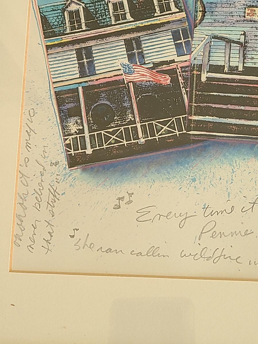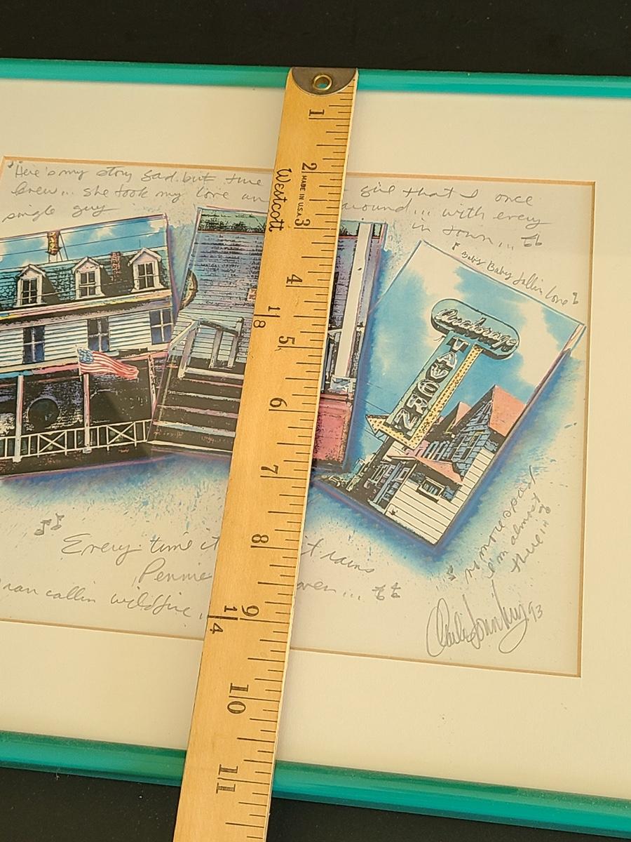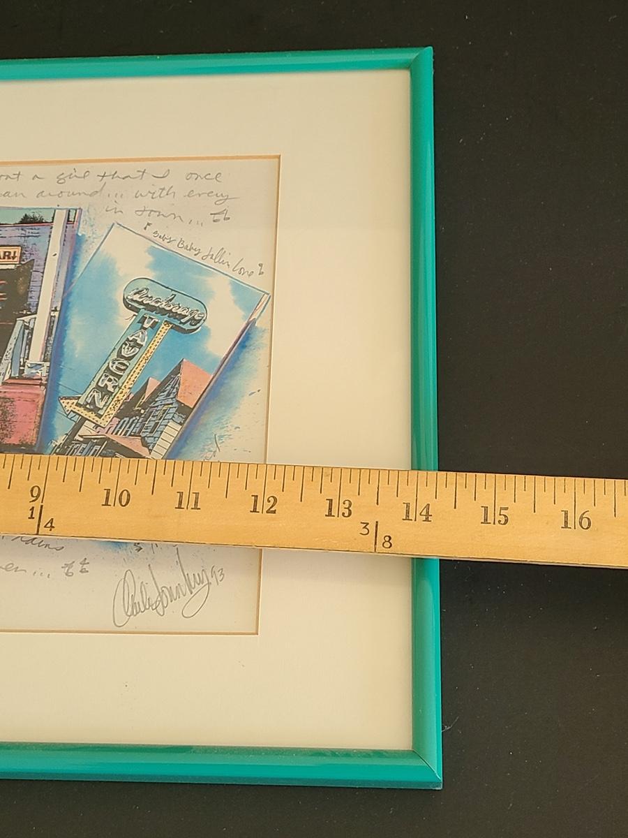 This framed artwork of local Jersey Shore tavern, has penciled lyrics surrounding the art. Signed and dated 93 by Charles Lounsberry in pencil. Great to add to any home or art collection. Please see all pictures for content of the lot, condition of the lot, and measurements if taken. Pictures are the best representation of the items listed and items are untested unless indicated in description. Thank you for looking and have fun bidding![