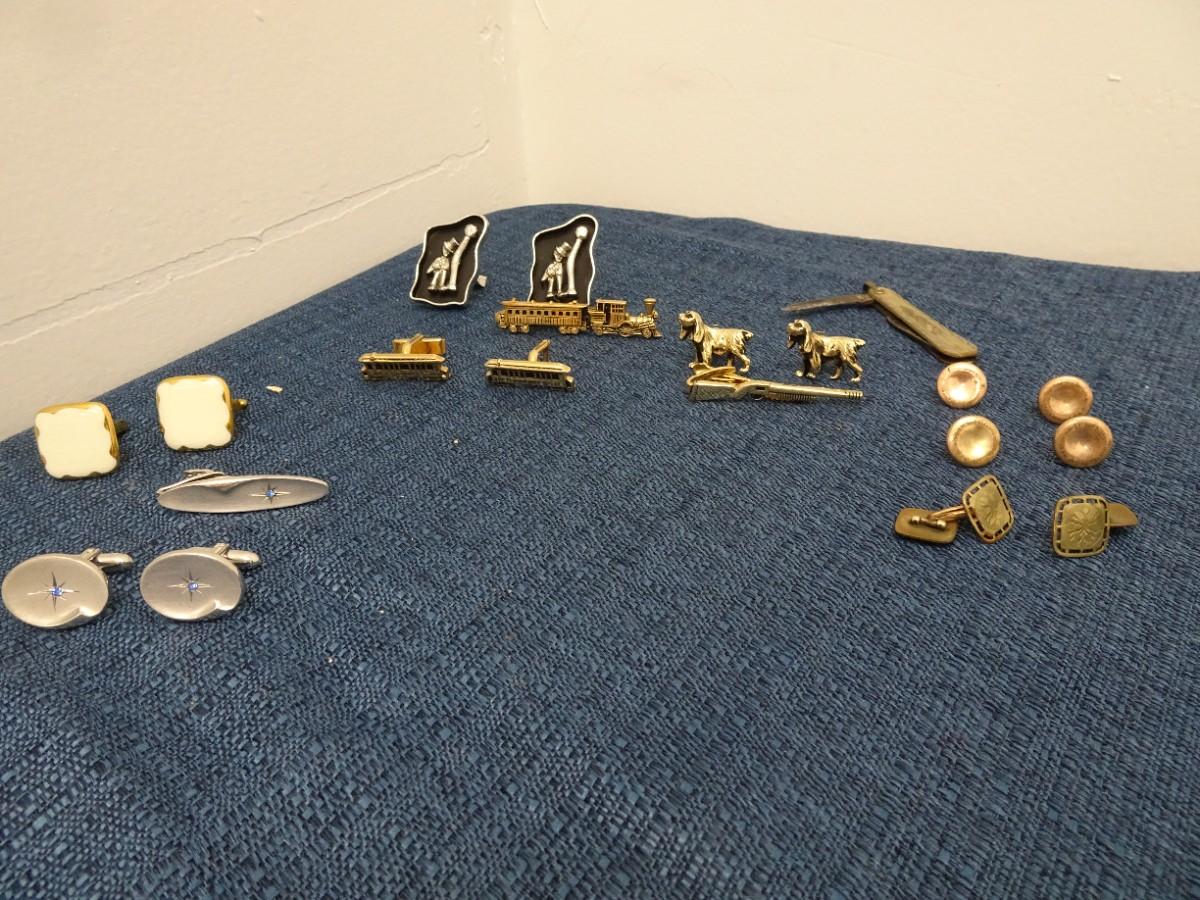 LOT 387. VINTAGE CUFFLINKS AND TIE TACKS