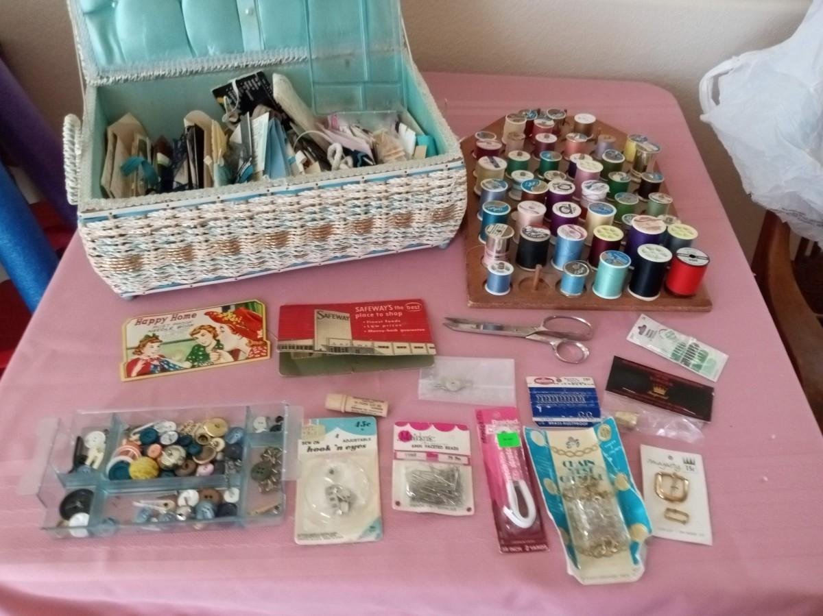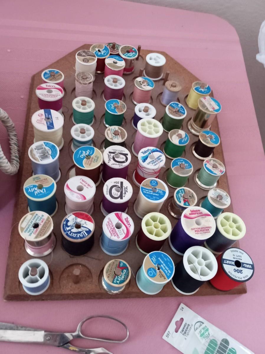 LOT 387 WALL HUNG THREAD HOLDER, SEWING NOTIONS AND BINDING