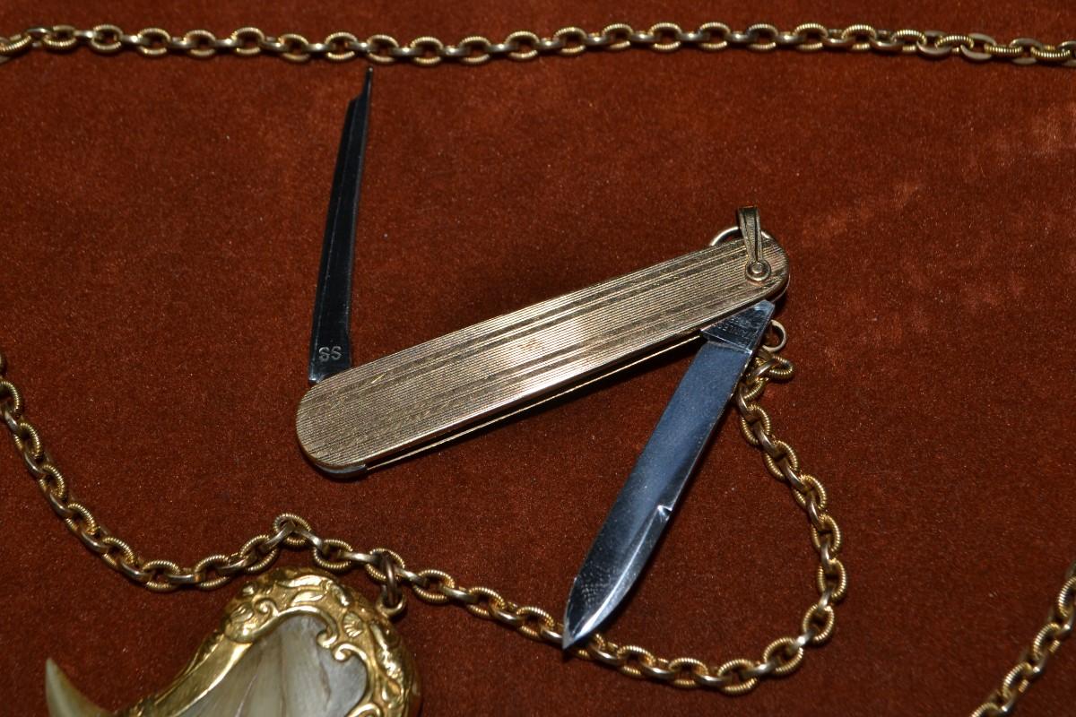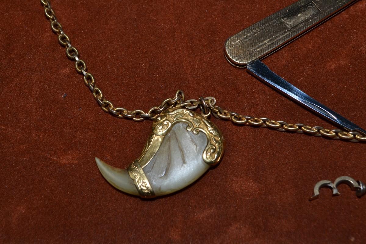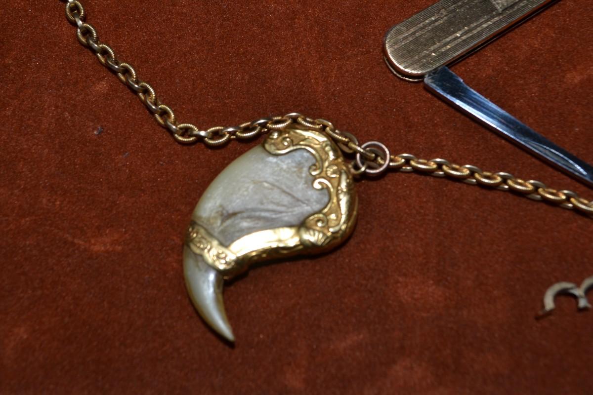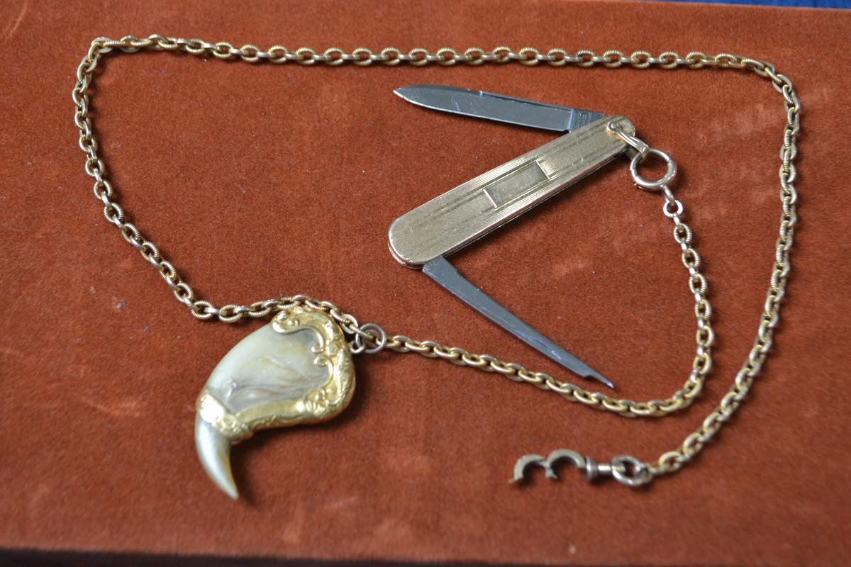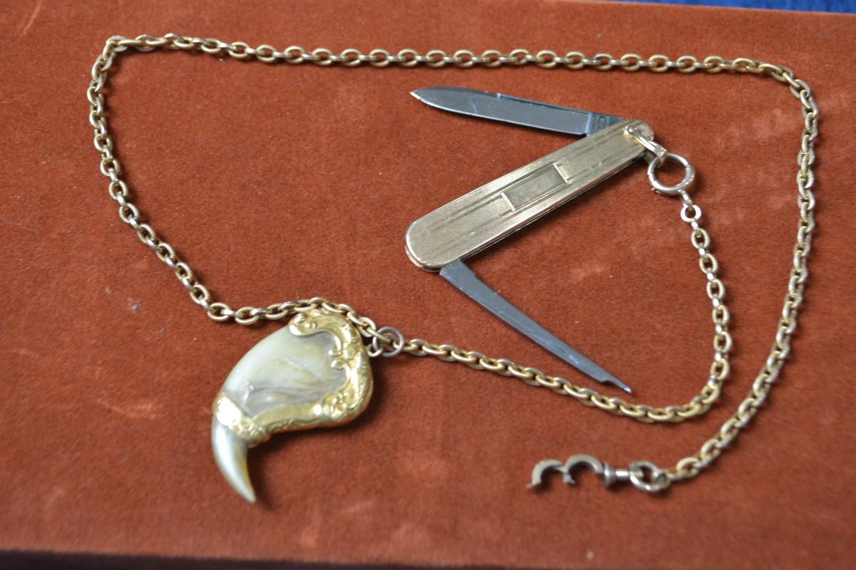 POCKET WATCH CHAIN WITH TIGER CLAW AND PEN KNIFE