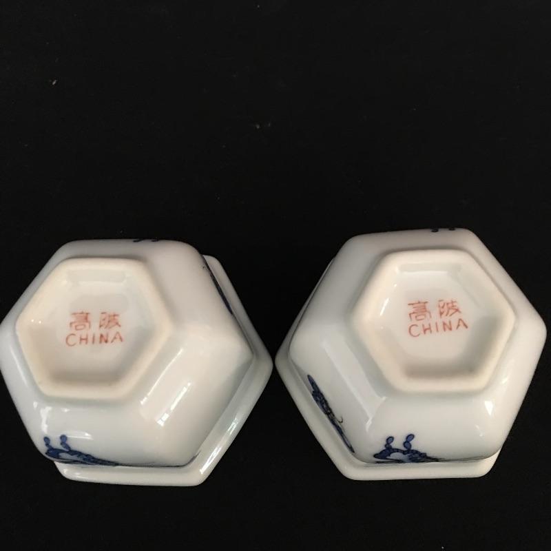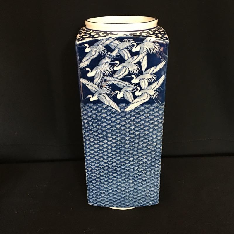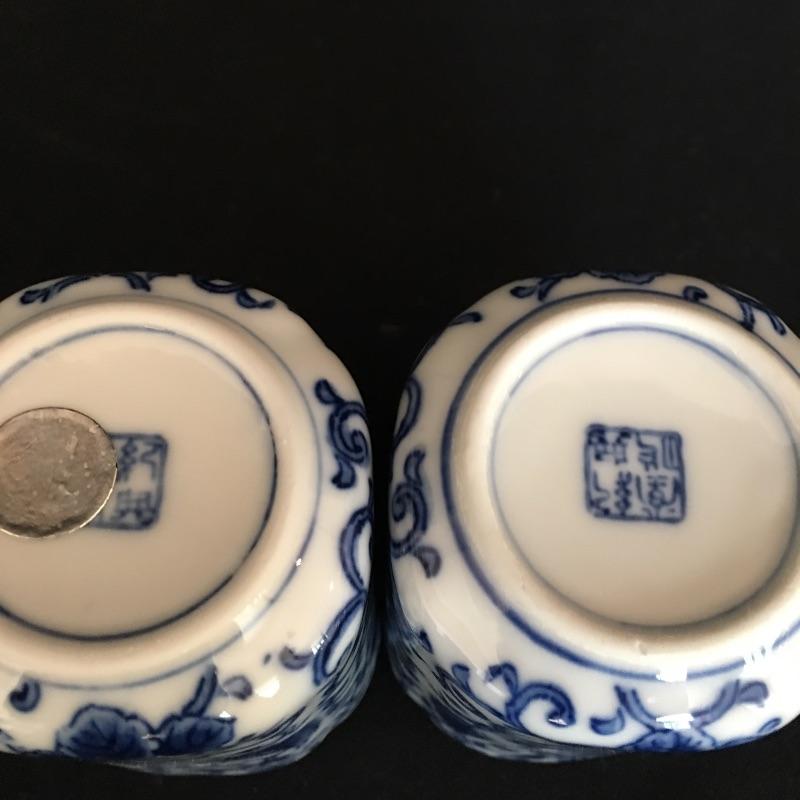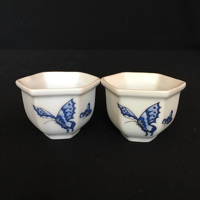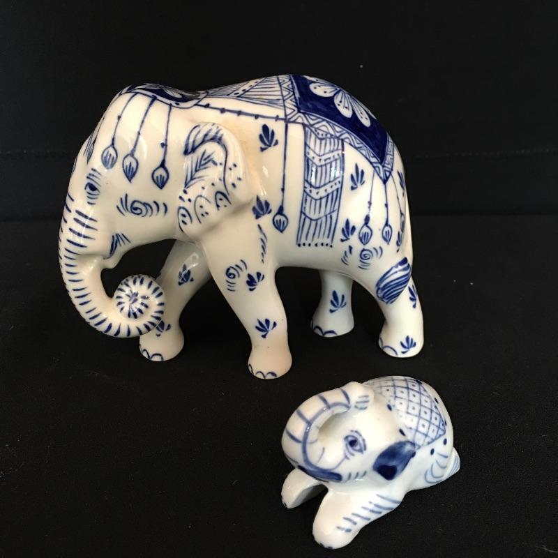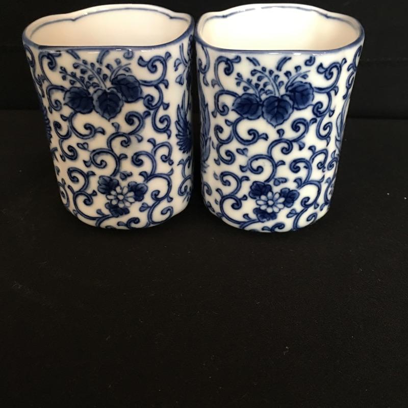 Nice Asian inspired array of China including four small cups, one coffee cup, small plate, pair of elephants, vase and small container. Vase measures 4.75” x 4.75” x 12.25”.