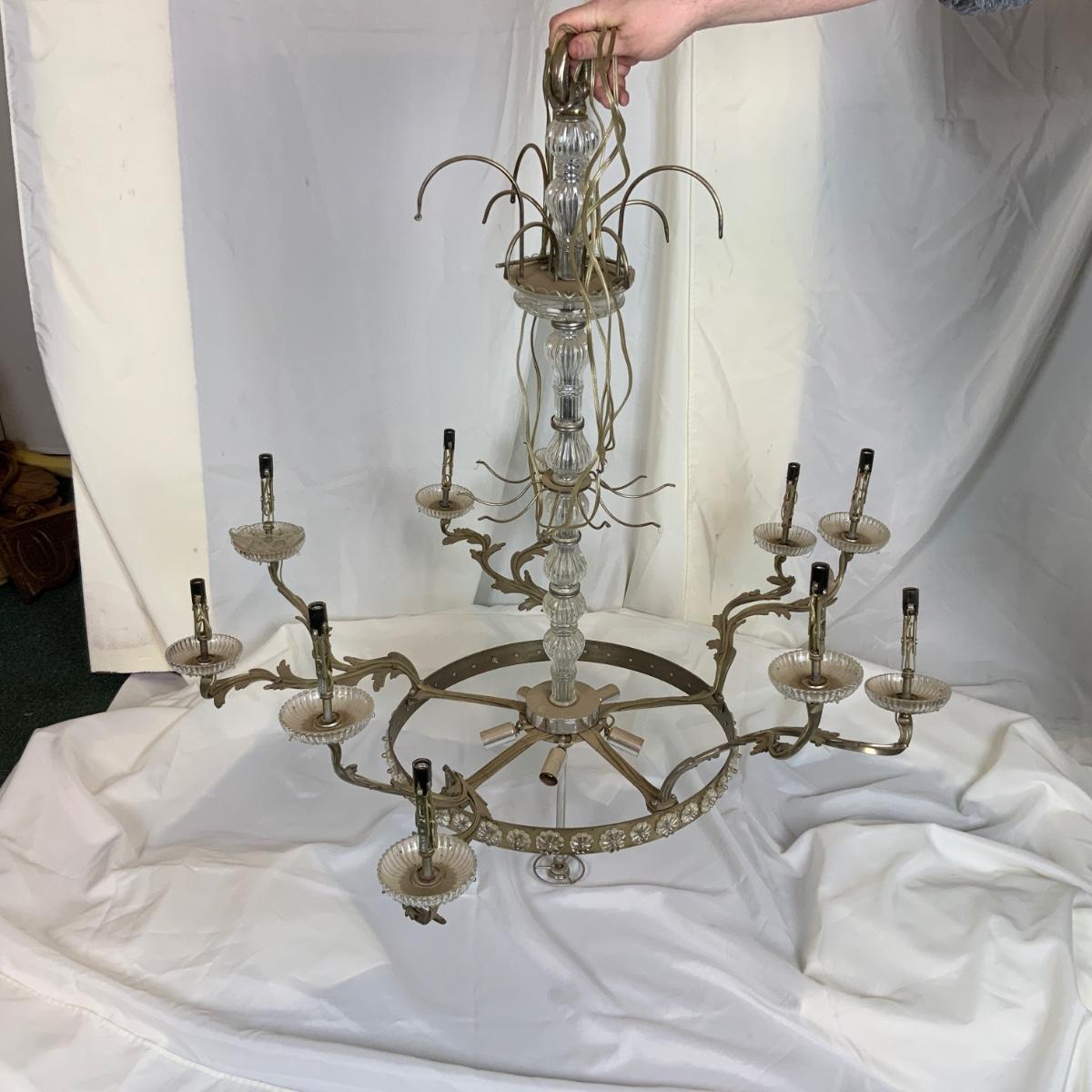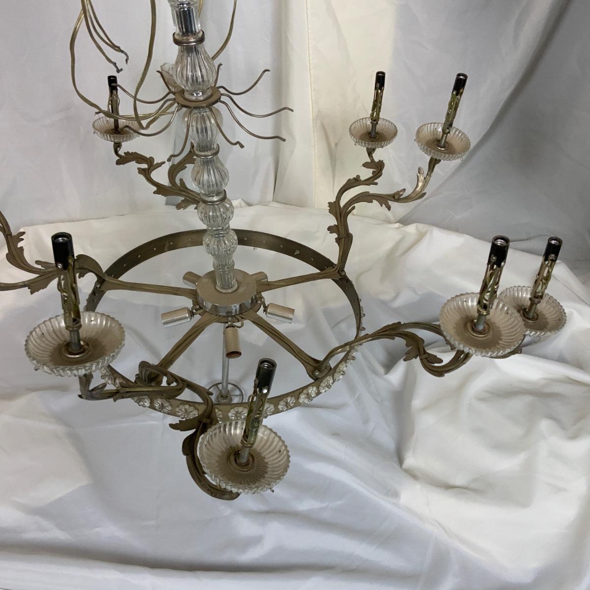 Lead Crystal Chandelier, electrified. Some of the Crystal “candle catchers” need repair. Some chips noted. //::\\ Please see photos for details and condition. No attempt has been made to hide any imperfections. All items listed in this auction are warehouse items, and need to be cleaned. A majority of the items need restoration as well. All items are sold AS IS and WITHOUT GUARANTEE. If you are uncertain about an item, DO NOT BID. Due to the nature of this online auction in-person inspection is HIGHLY recommended. All Sales are FINAL. Pick Up Times are FIRM. Please confirm with your own schedule that you can pick up in the scheduled times listed in the Terms and Conditions. Any questions please message the auctioneer. DO NOT Contact The Harp Gallery.