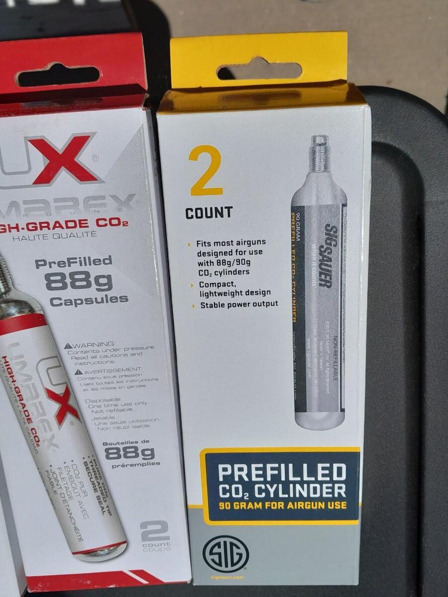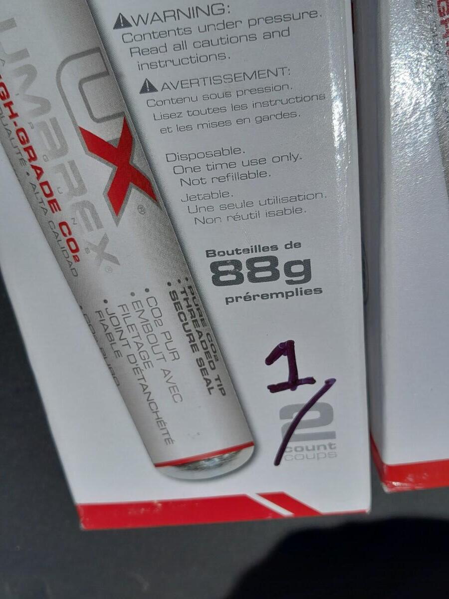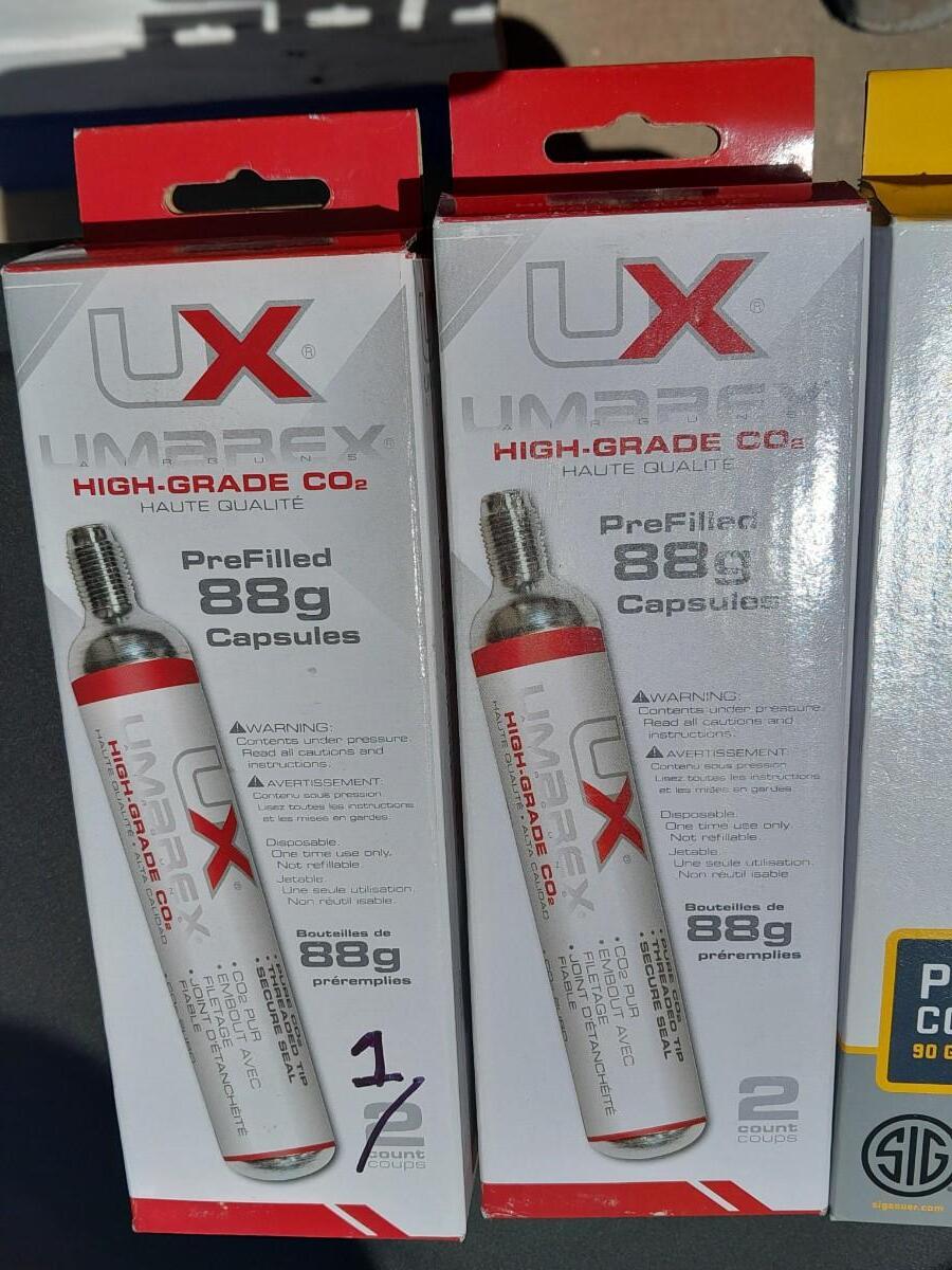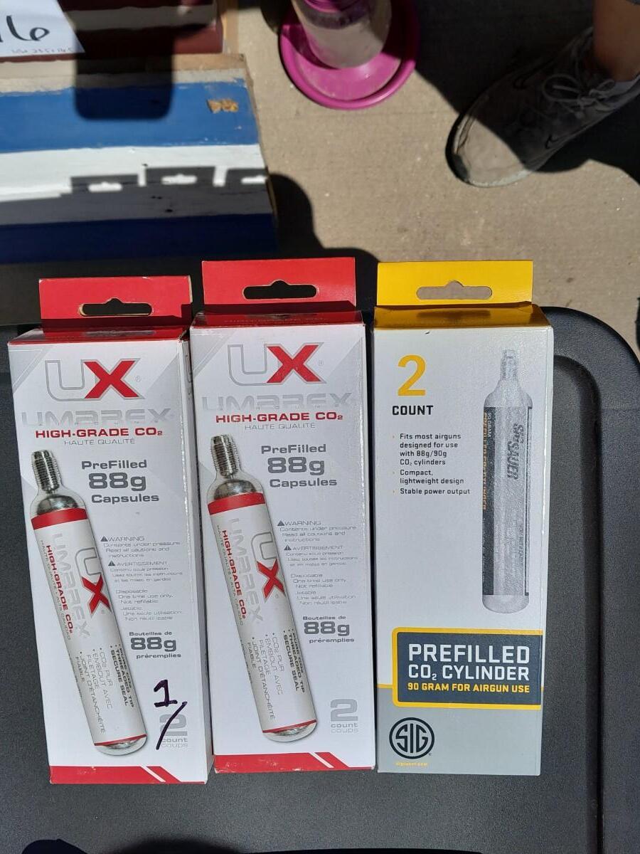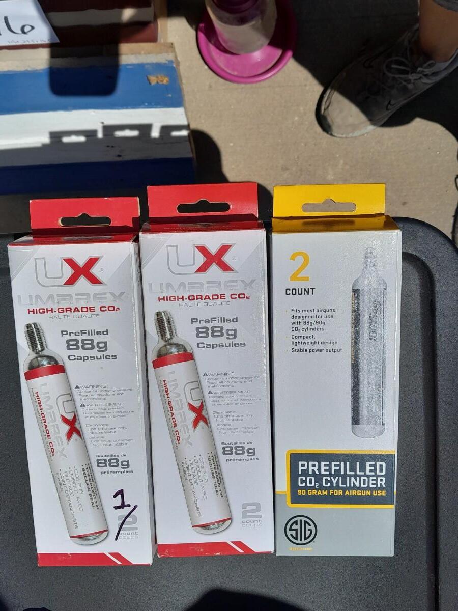 THREE BOXES OF 2 EACH HIGHGRADE CO2 CARTRIGES, ONE BOX ONLY CONTAINS ONE CAPSULE FOR A TOTAL OF 5