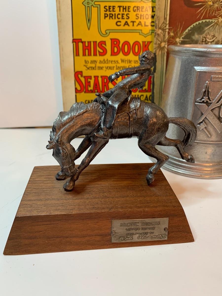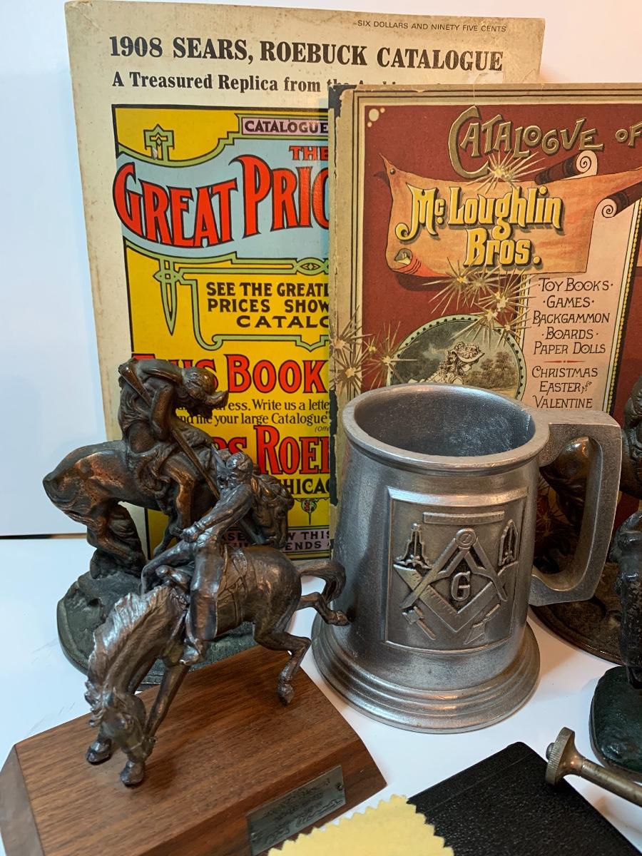Lot 388  Vintage 1908 Sears Catalog," Bronc Buster" Sculpture, Cast Bookends and More