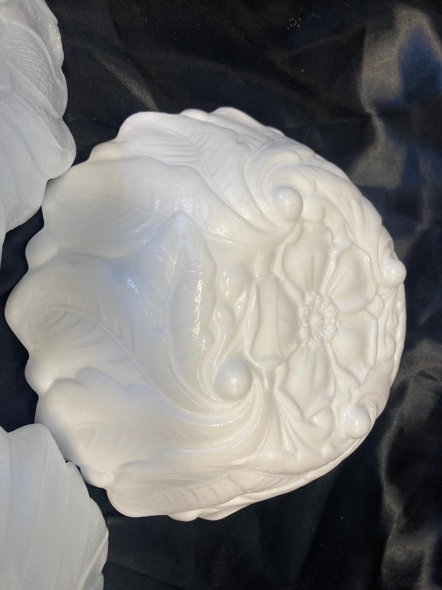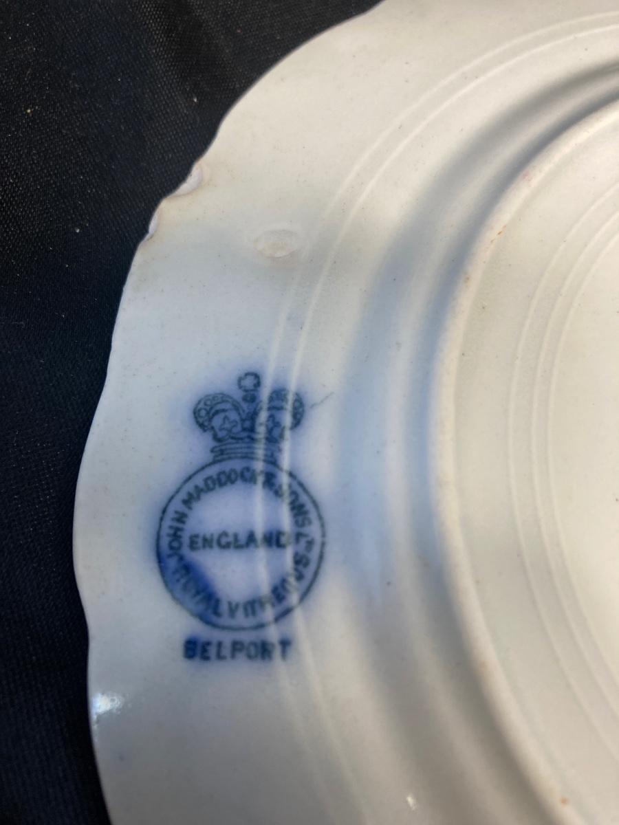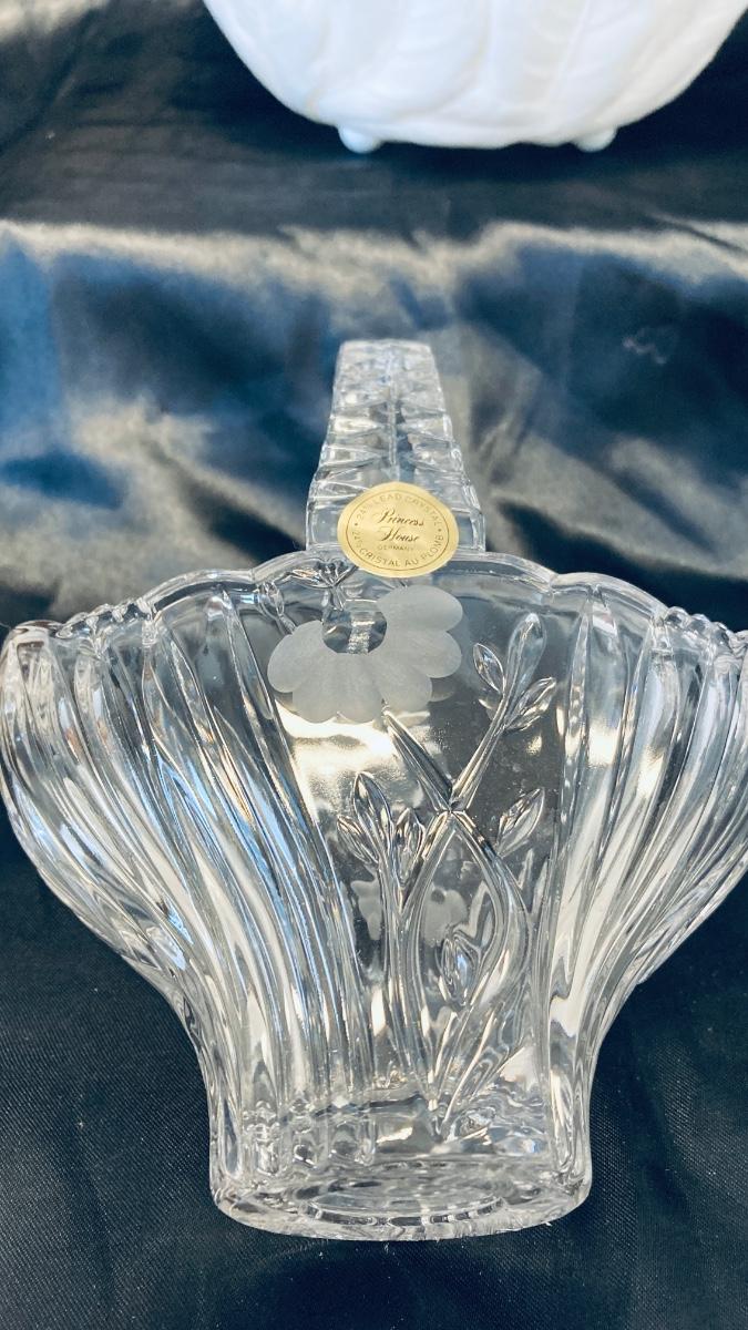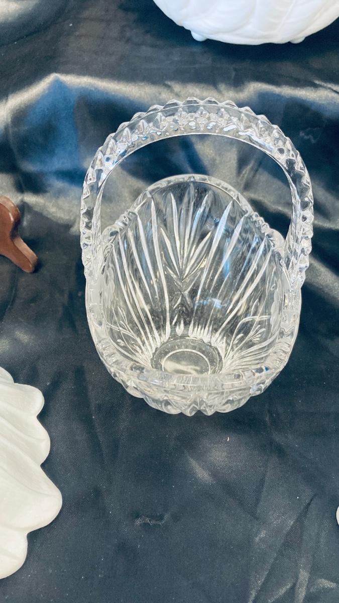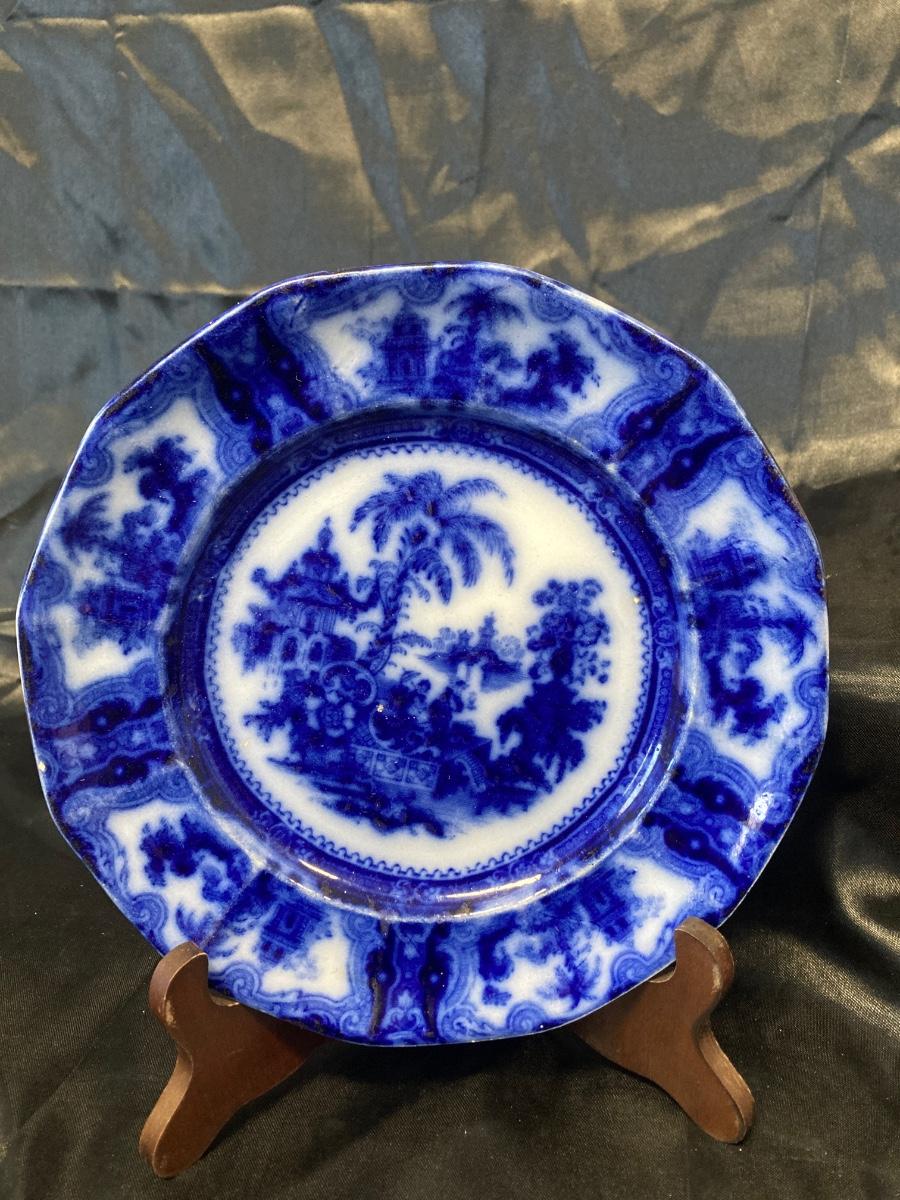 .PRINCESS HOUSE CRYSTAL BOWL, VINTAGE MILK GLASS FLOWER PETAL BOWLS, AVON OWL SOAP DISH, MADDOCK, JOHN & SONS BLUE LUNCHEON PLATE, IMPERIAL GLASS DISH, OIL CANDLE AND A W. ADAMS FLOW BLUE LUNCHEON PLATE