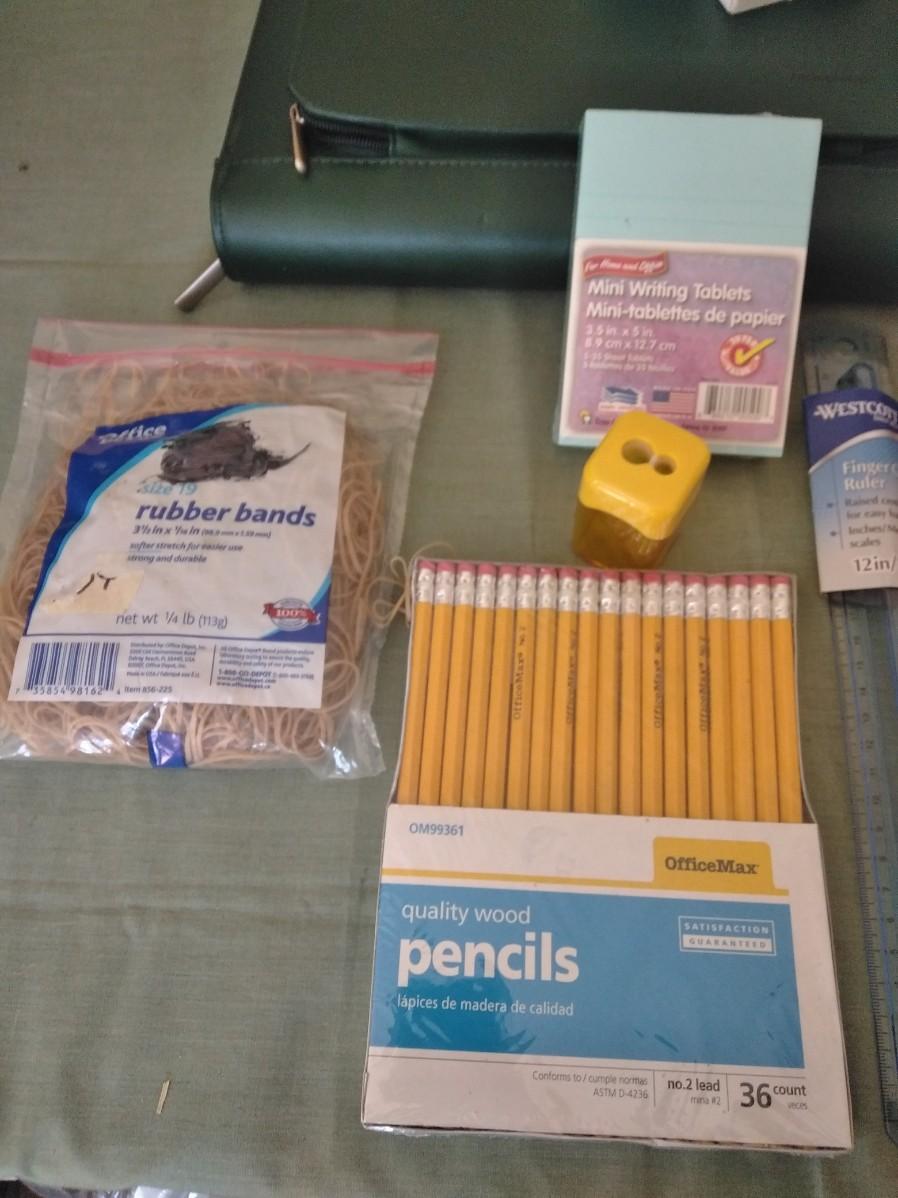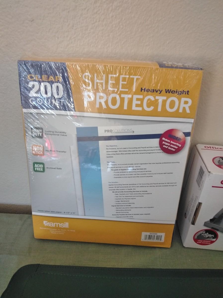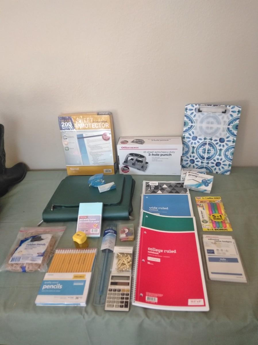 200 SHEET PROTECTORS, PENCILS, NOTEBOOKS, CLIP BOARD, LEATHER PORTFOLO, HIGHLIGHTERS, AND MORE