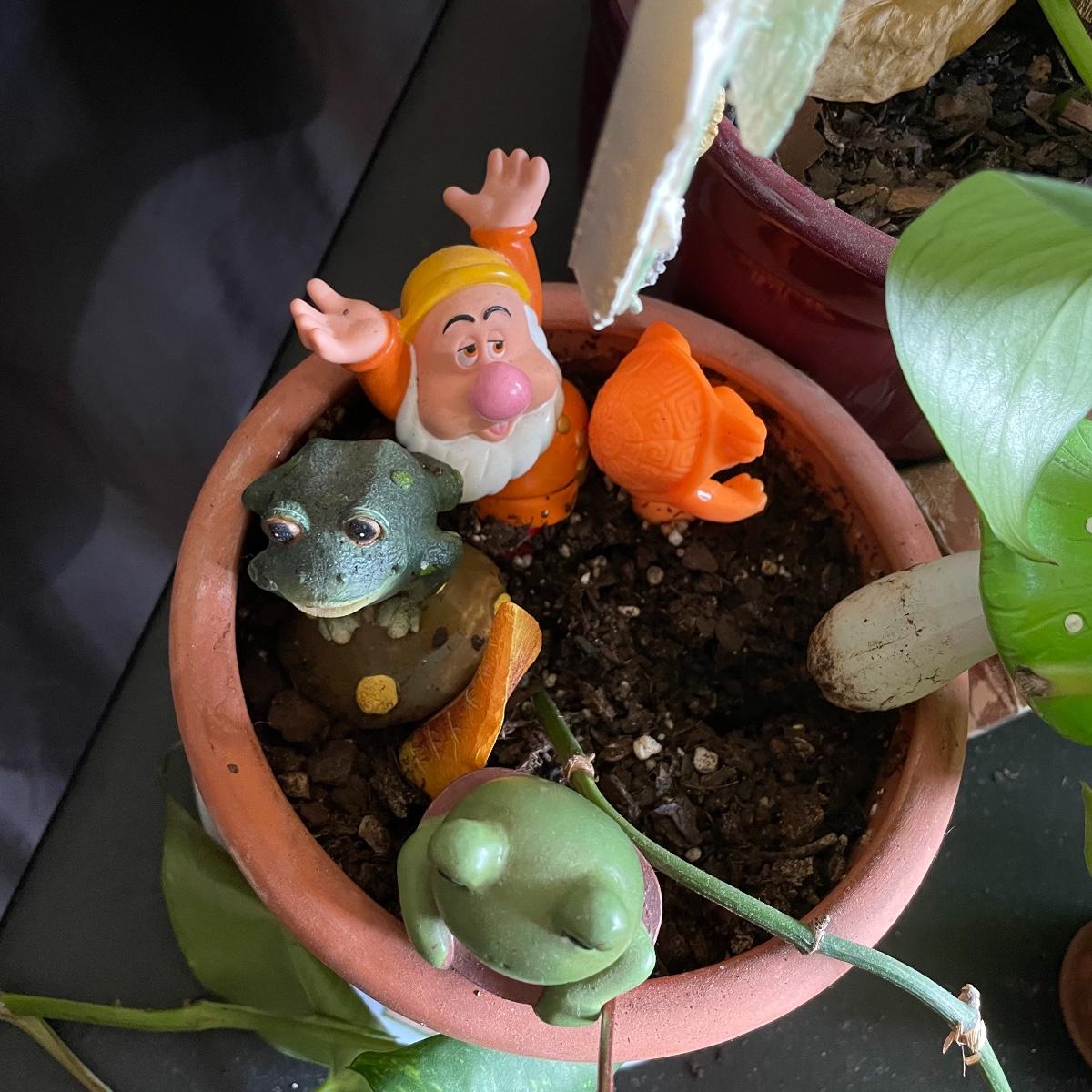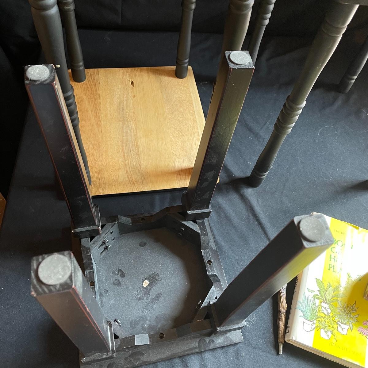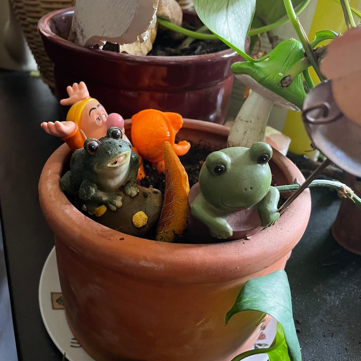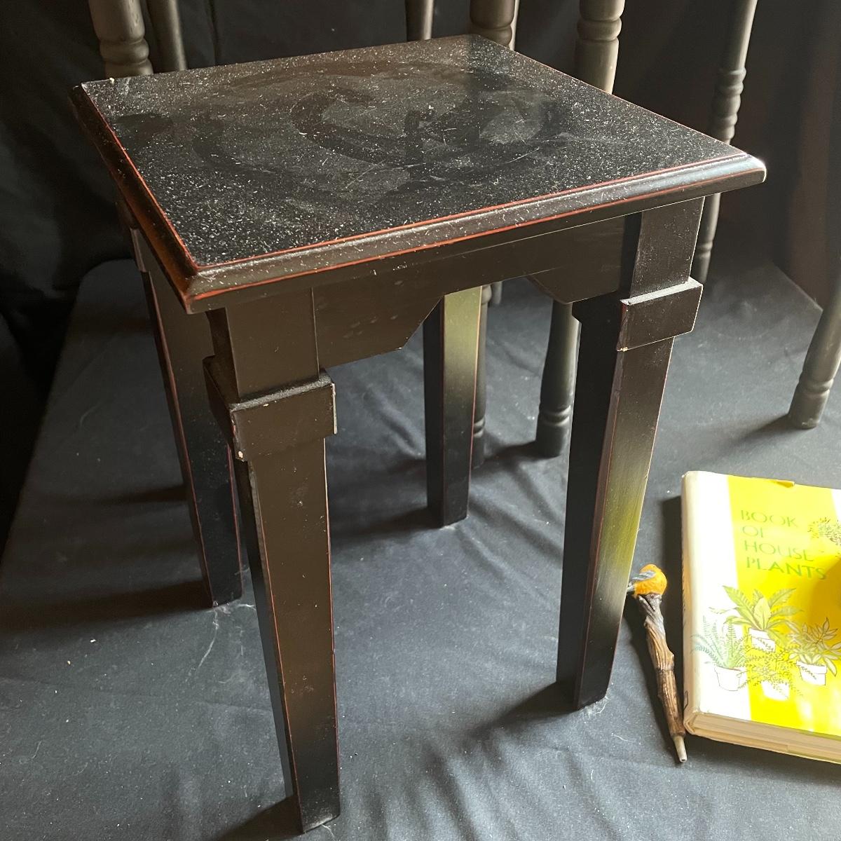 This lot includes money plants with some bamboo and English Ivy to add some life into your home or office. The collection contains so many pot keepers that are adorable and beautiful. There are also over sixteen planters and three black wooden plant stands. (The card table is not included.) The larger two are identical and measure 12” x 13” x 17”. Most planters are ceramic; the largest is 10” tall and is the only plastic planter in the lot. There is a beautiful dark pottery piece that has a few sizable cracks, but seems intact. The plants are a bit droopy, we have watered these plants after photographing, but we cannot guarantee condition at pick-up. See images. Local pick up only