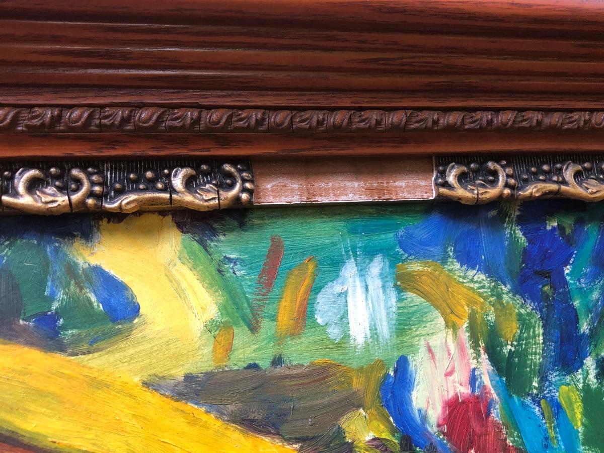 Framed piece measures 33.5 x about 40 inches.