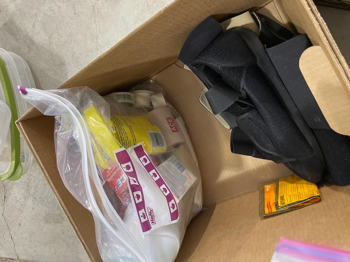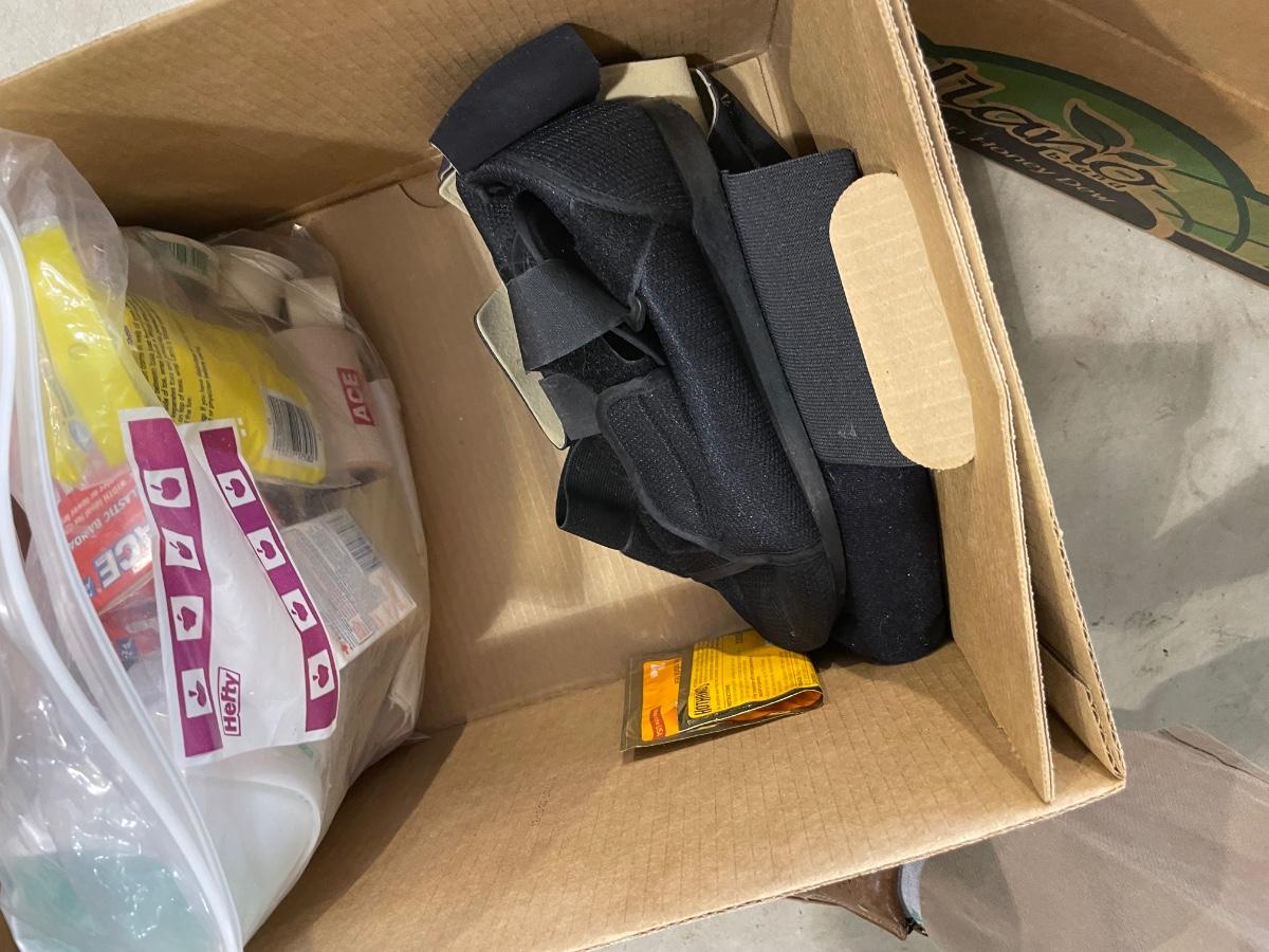 box of miscellaneous ace bandages and supplies