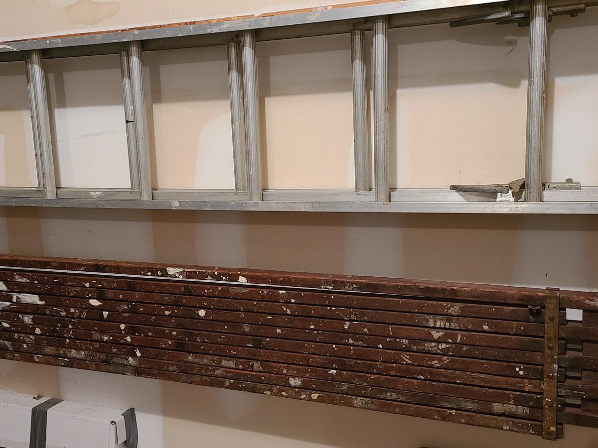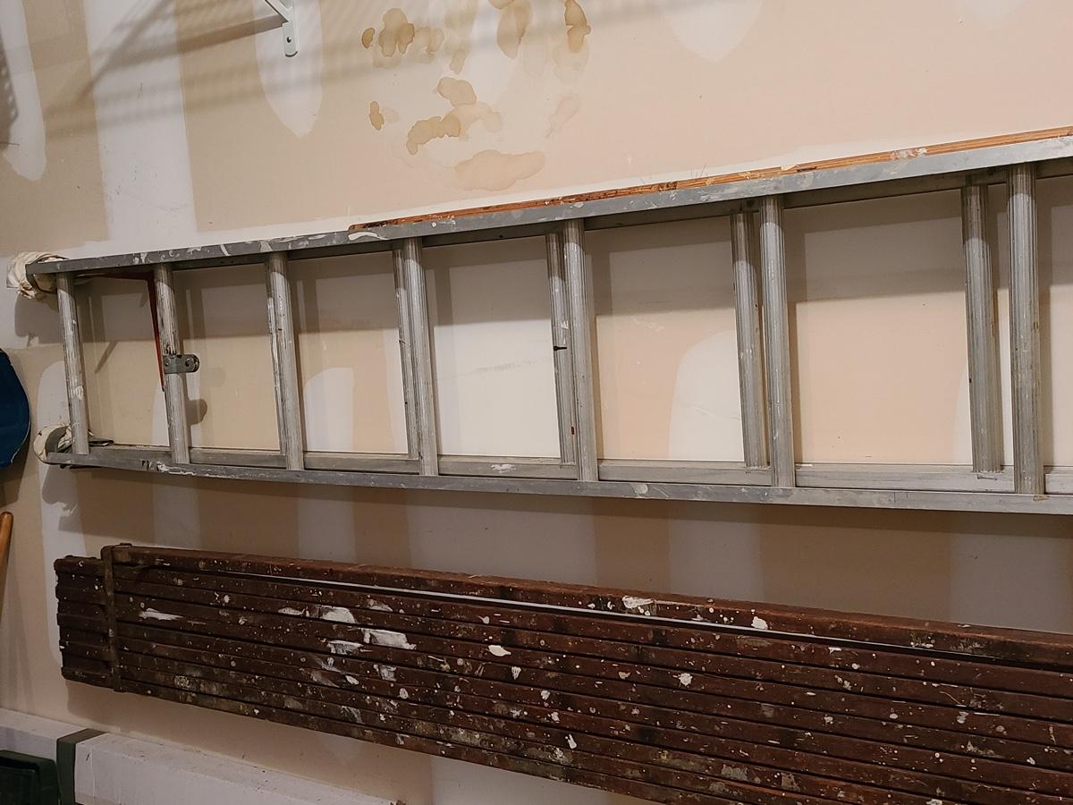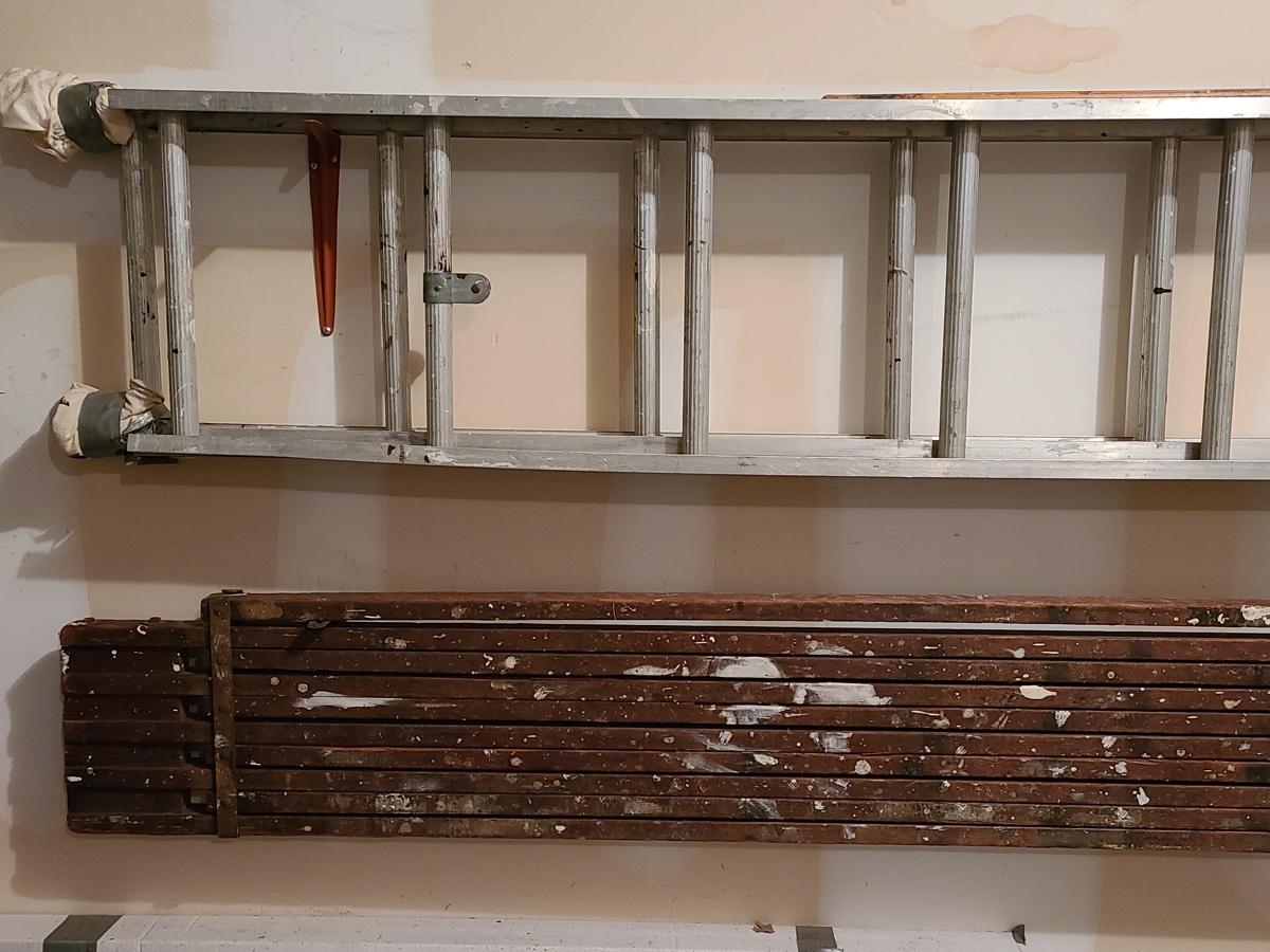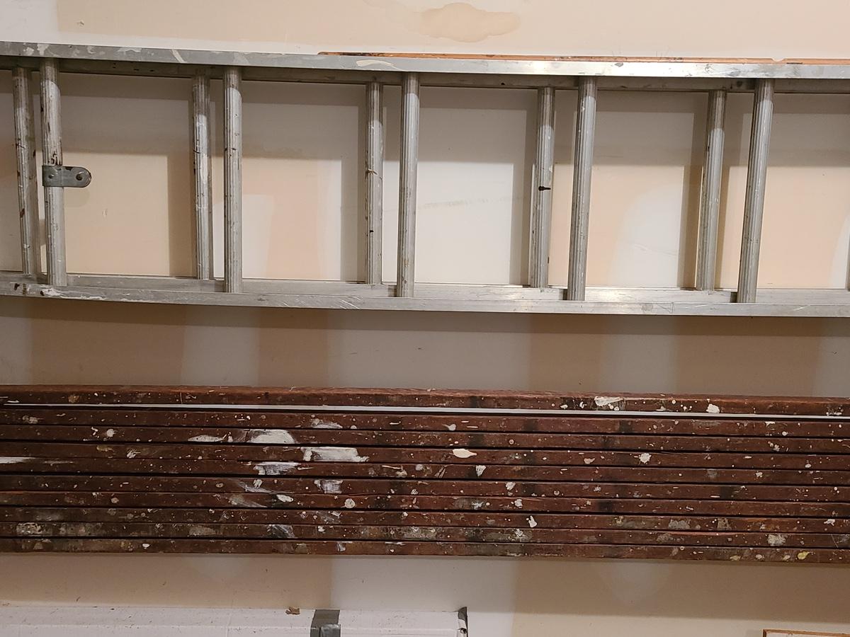 Lot 389: Aluminum Extension Ladder and Wood Scaffolding