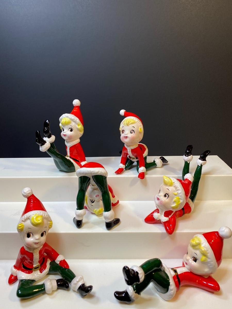 Set of 6 Vintage Christmas pixies. Please see photos as two pixies were broken and have been glued to repair. Lot is being sold “As Is”. The pictures show condition, measurements if taken, and what is included in the lot. Due to the large amount that we photograph and the time frame, we are not always able to take measurements. All items unless noted, are pre-owned and have been used, and are untested. Thank you.