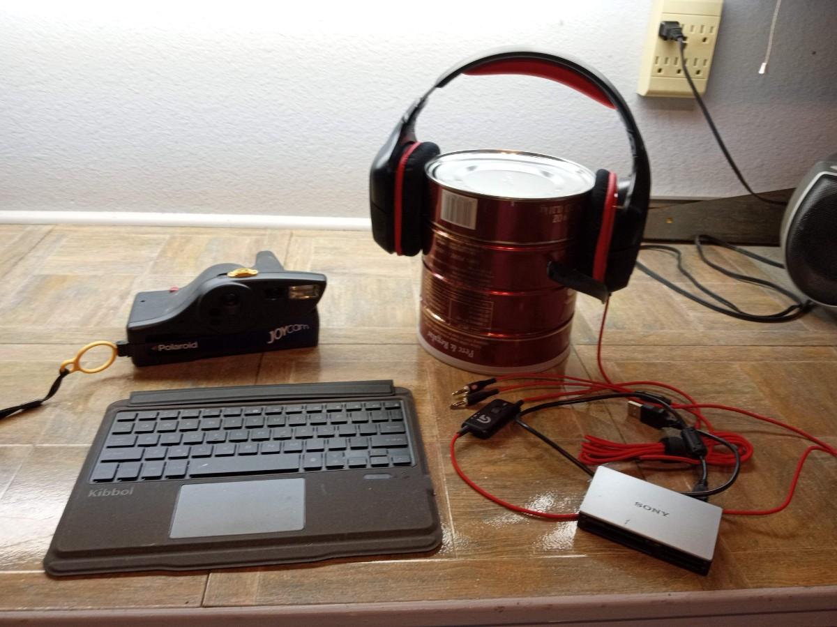 HEADPHONES WITH MICROPHONE MARKED G230, ADAPTER FOR SD CARDS, KEYPAD FOR TABLET (COFFEE CAN NOT INCLUDED) LOL