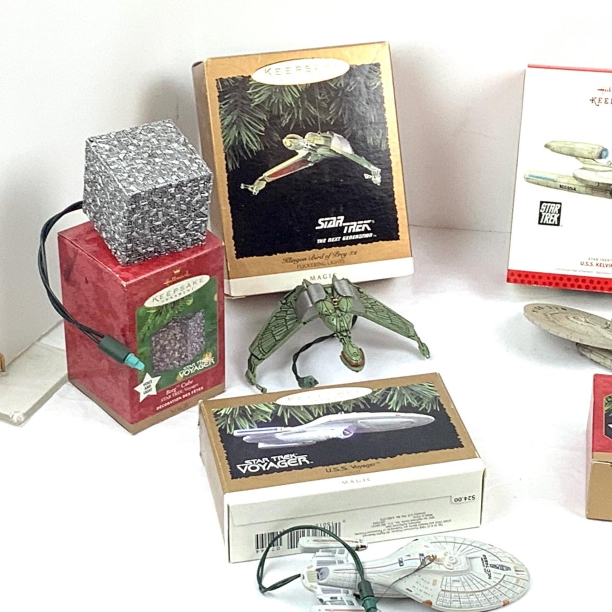 Lot 389 Lot of Vintage Hallmark Star Trek Ornaments ( 9 total, 7 with boxes )