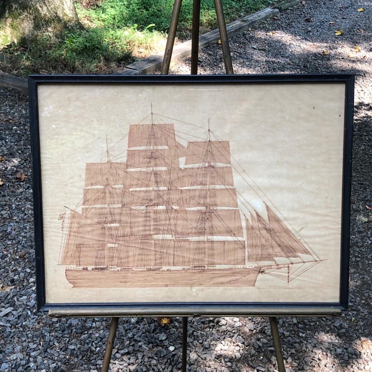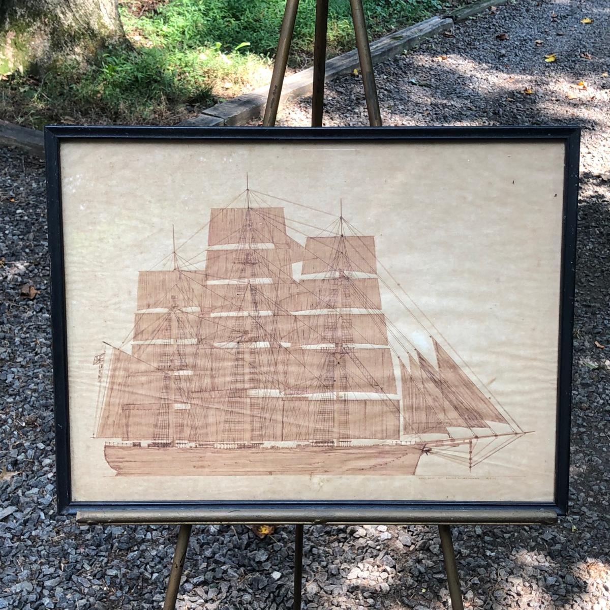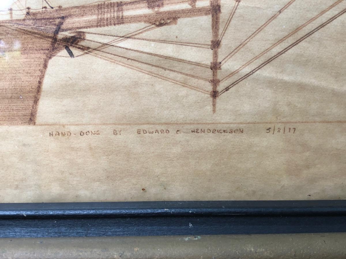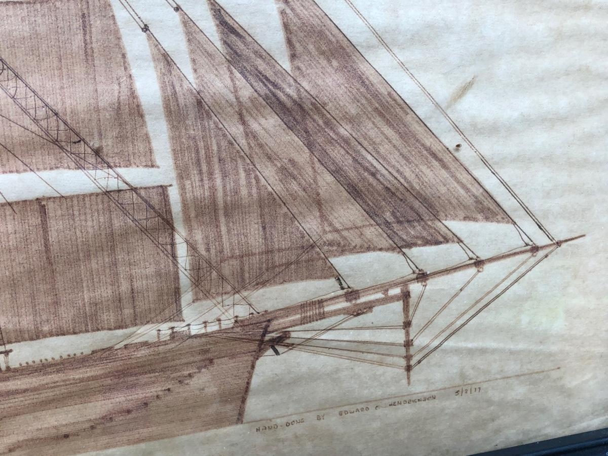 LOT 389G: Vintage 1977 Hand Done Signed Clipper Ship Drawing by Edward C Hendrickson (American)