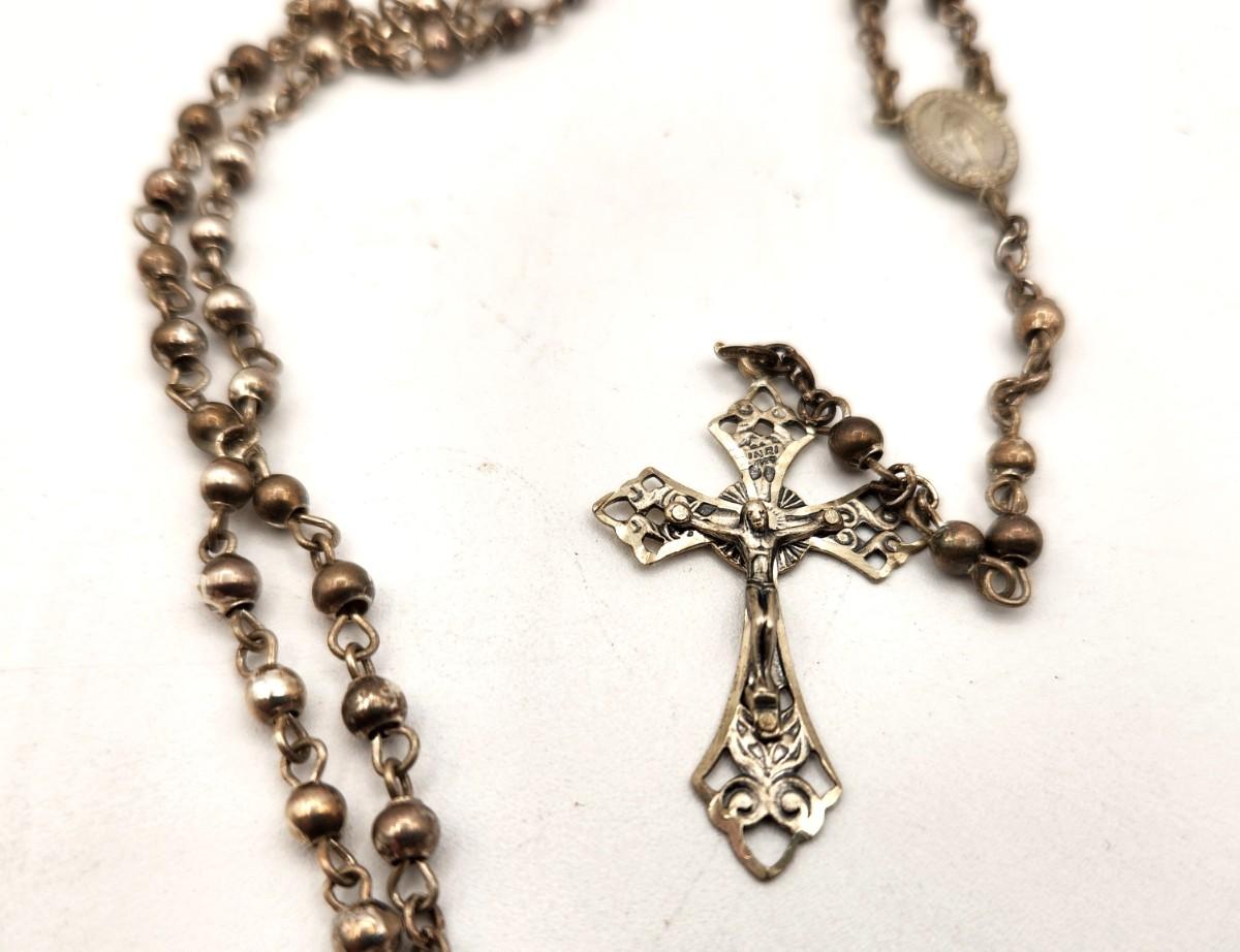 Vintage Sterling Silver (marked) chapel rosary - a small rosary you keep in your purse or pocket. Nice condition - 13.75" long.