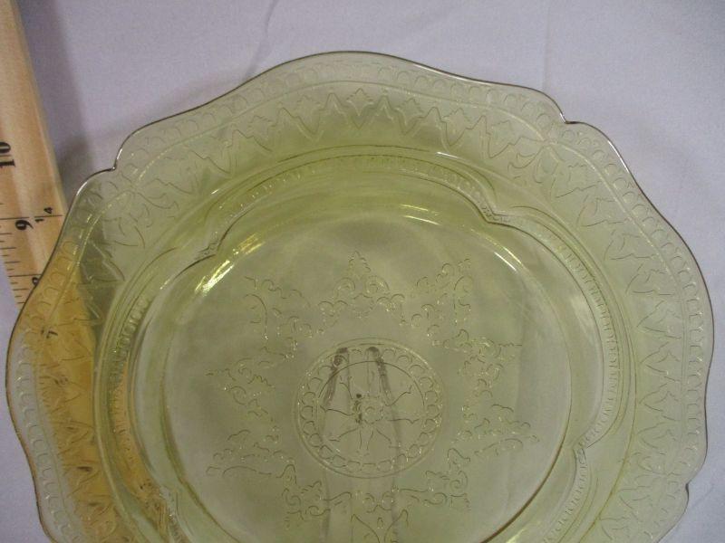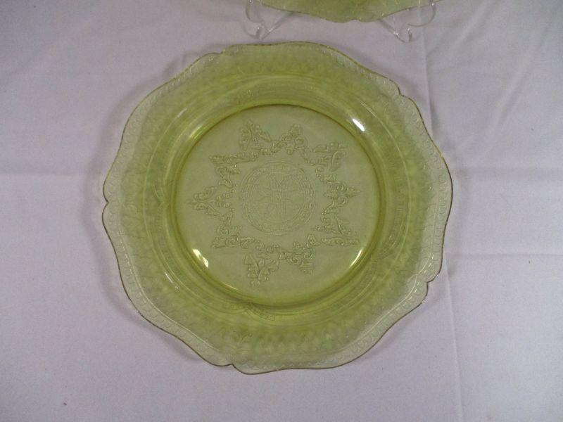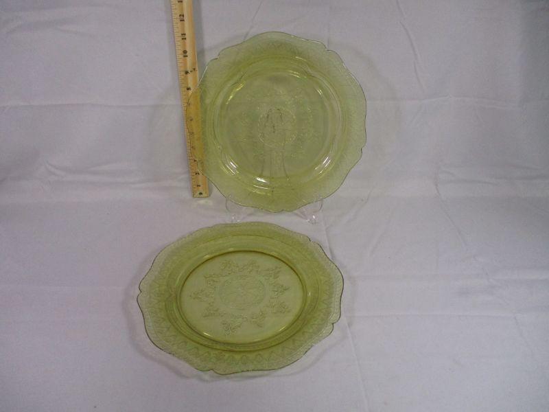These plates are in excellent condition and measure about 11" in diameter. They are by Federal Glass and in the Patrician pattern which was produced between 1933-1937.