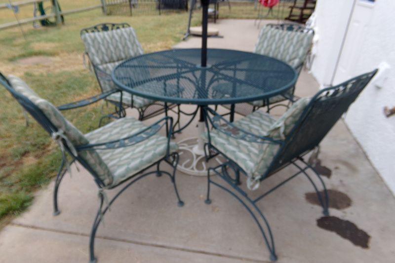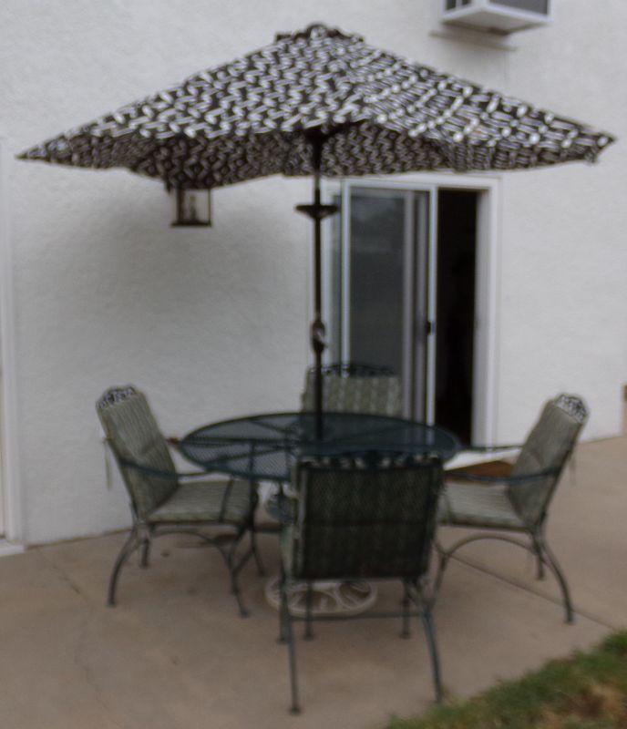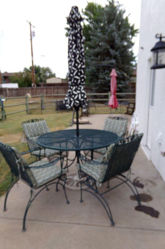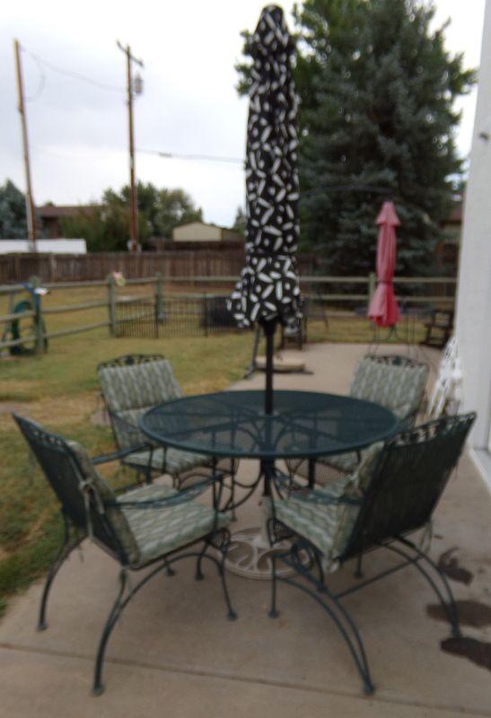 LOT 39  PATIO TABLE, CHAIRS, UMBRELLA