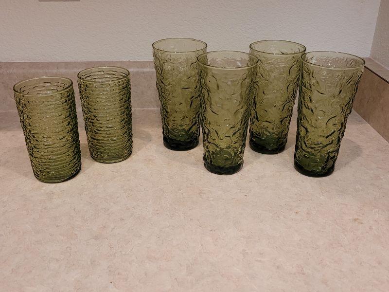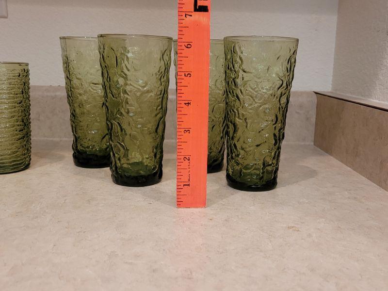 Lot 39: Mid Century Modern Green Glass Tumblers and Juice Glasses
