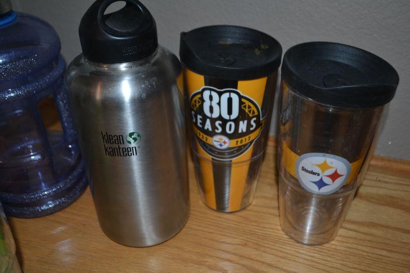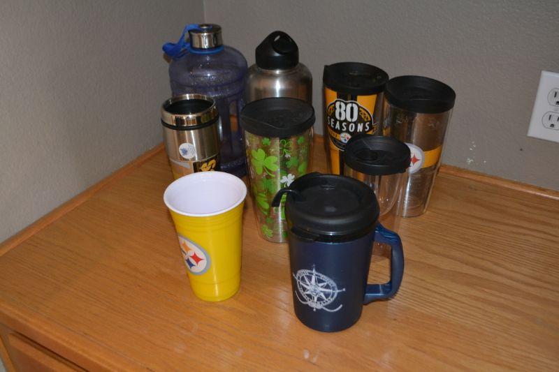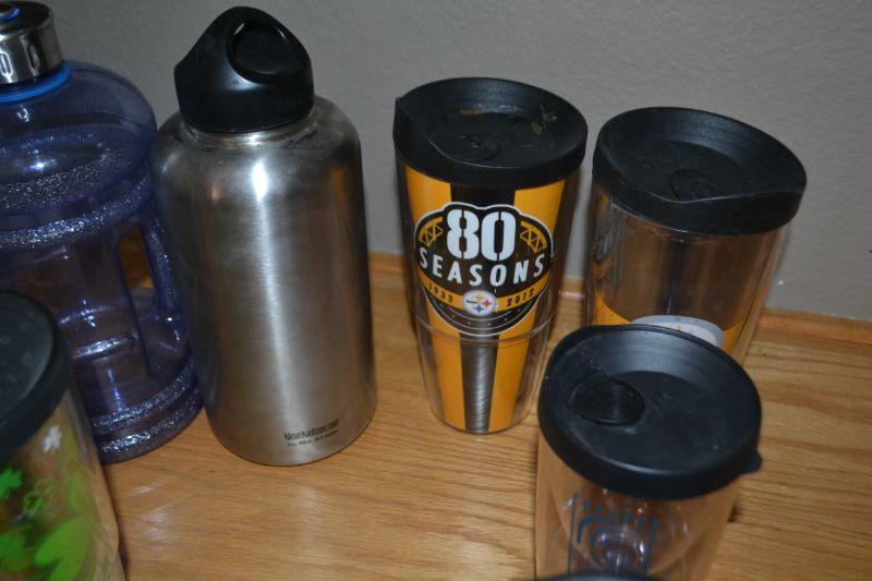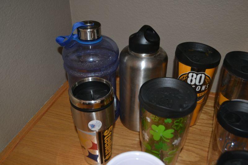 LOT 39 BOTTLES AND TRAVEL MUGS