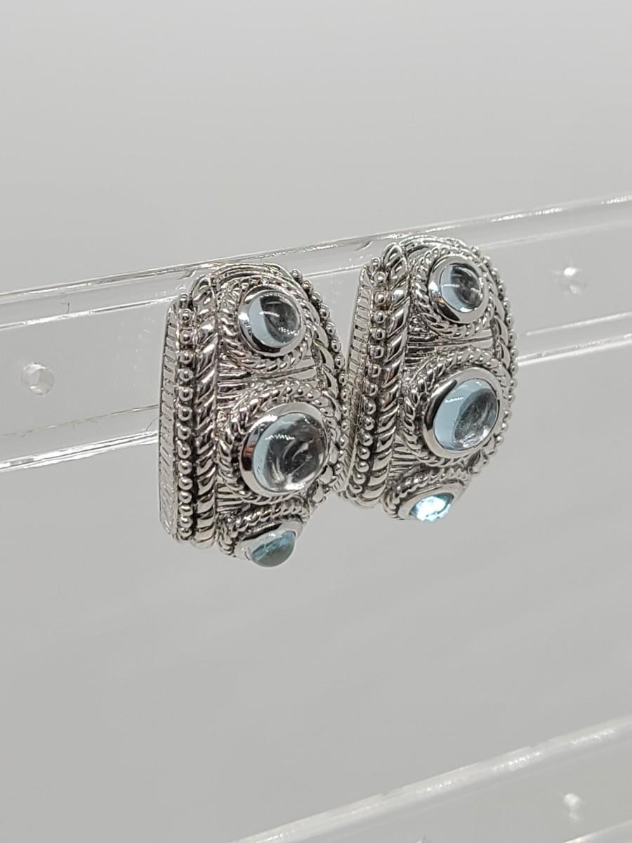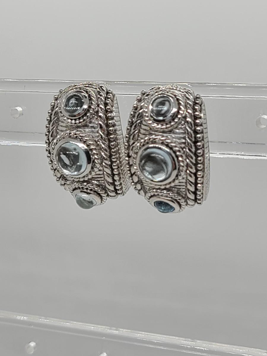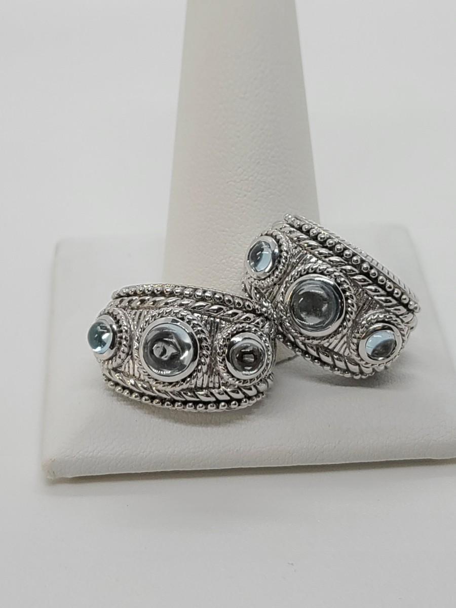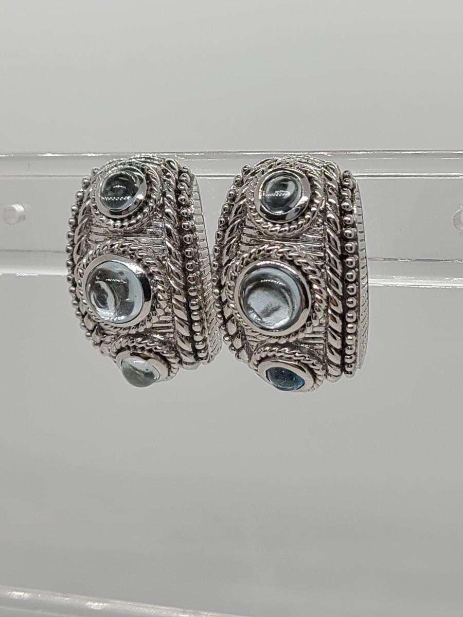 Lovely pair of Judith Ripka 925 Sterling silver and blue topaz cabachon pierced earrings. Great gift!