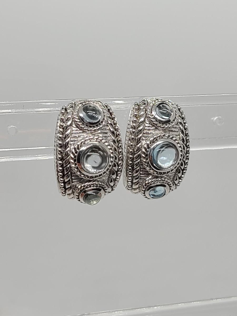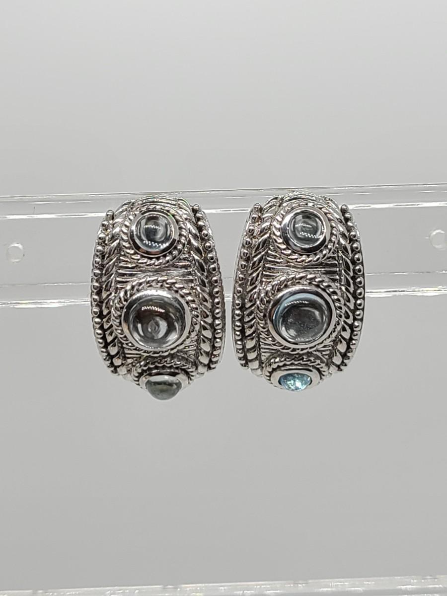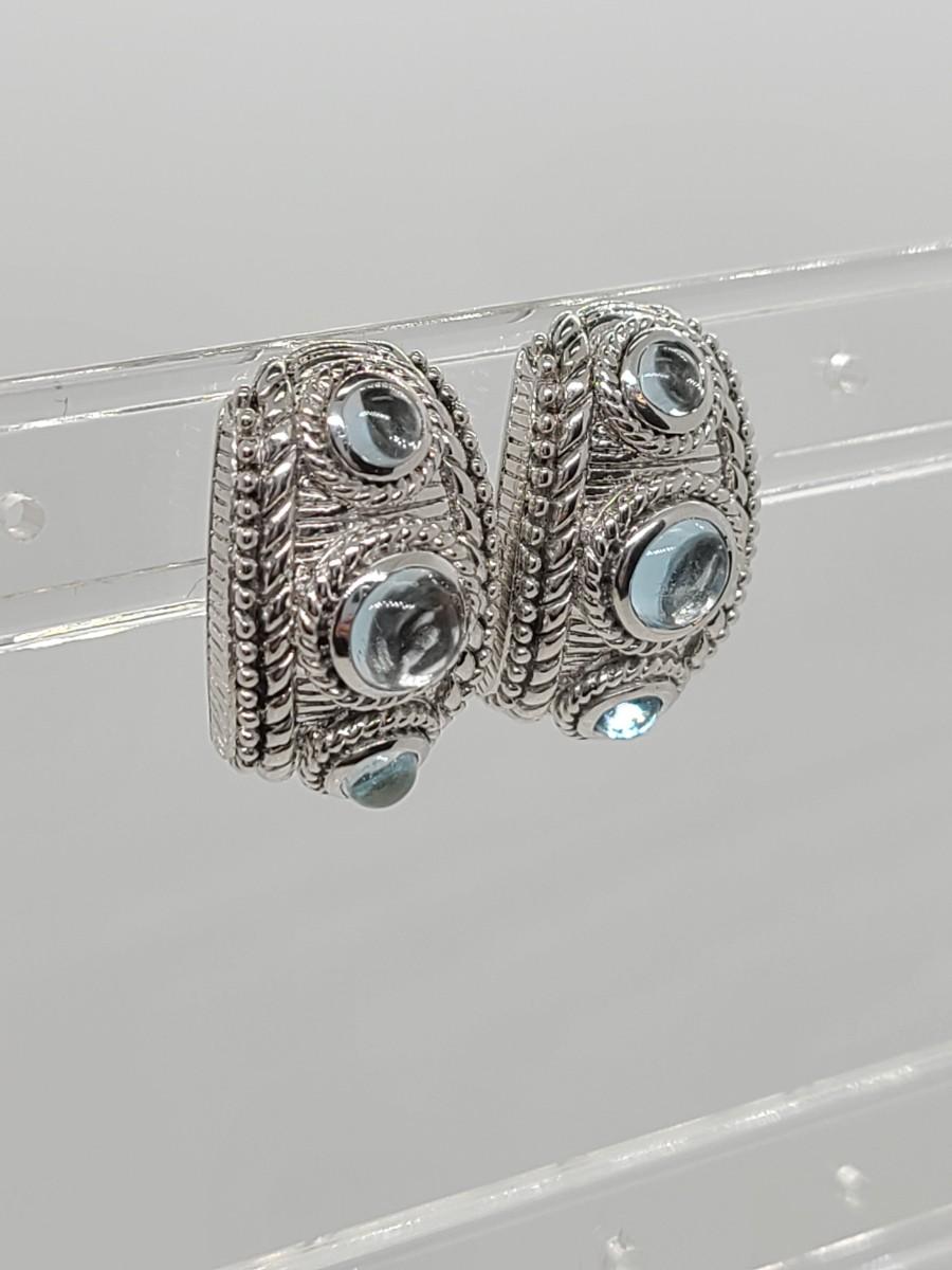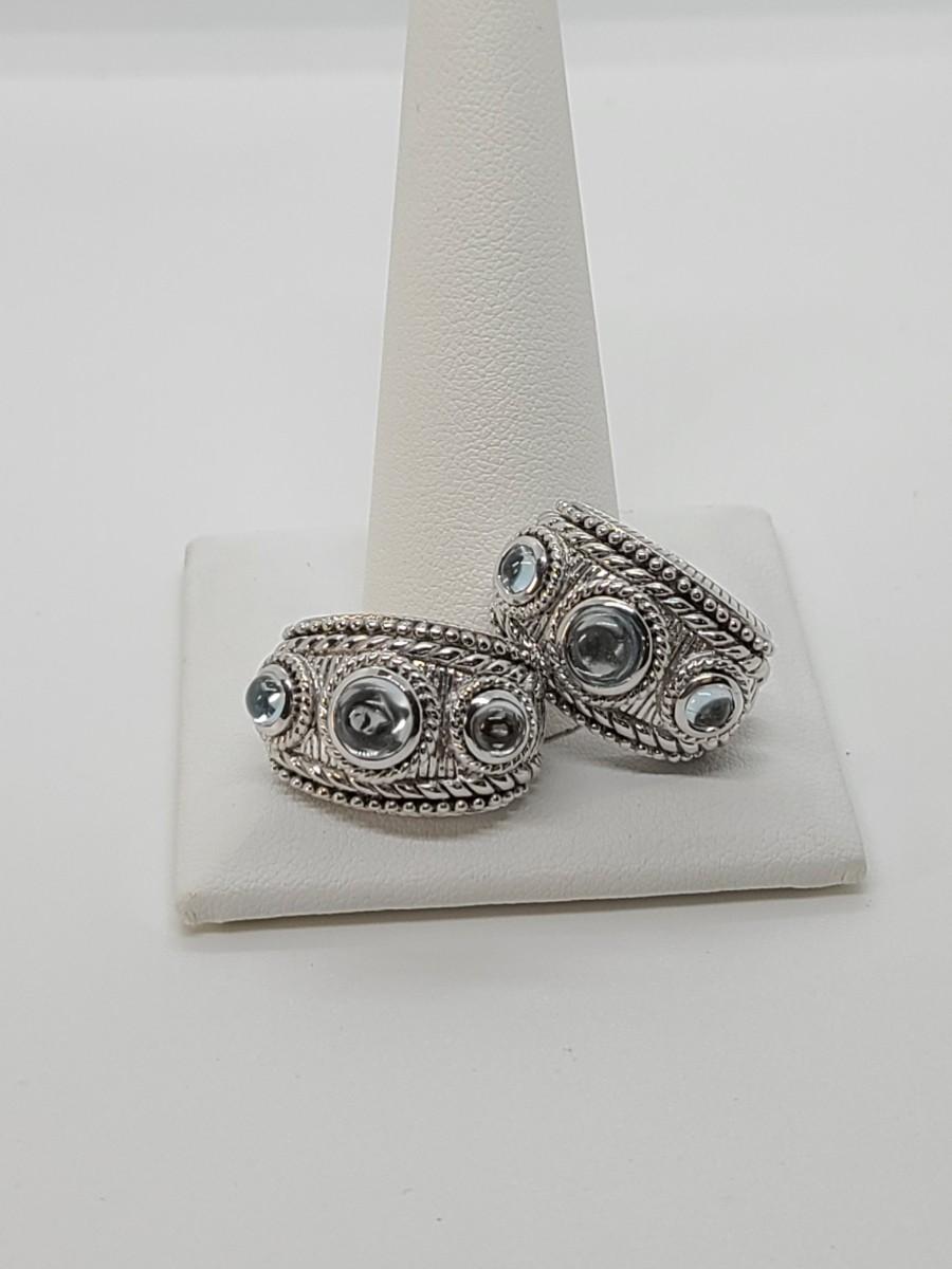 Lovely pair of Judith Ripka 925 Sterling silver and blue topaz cabachon pierced earrings. Great gift!
