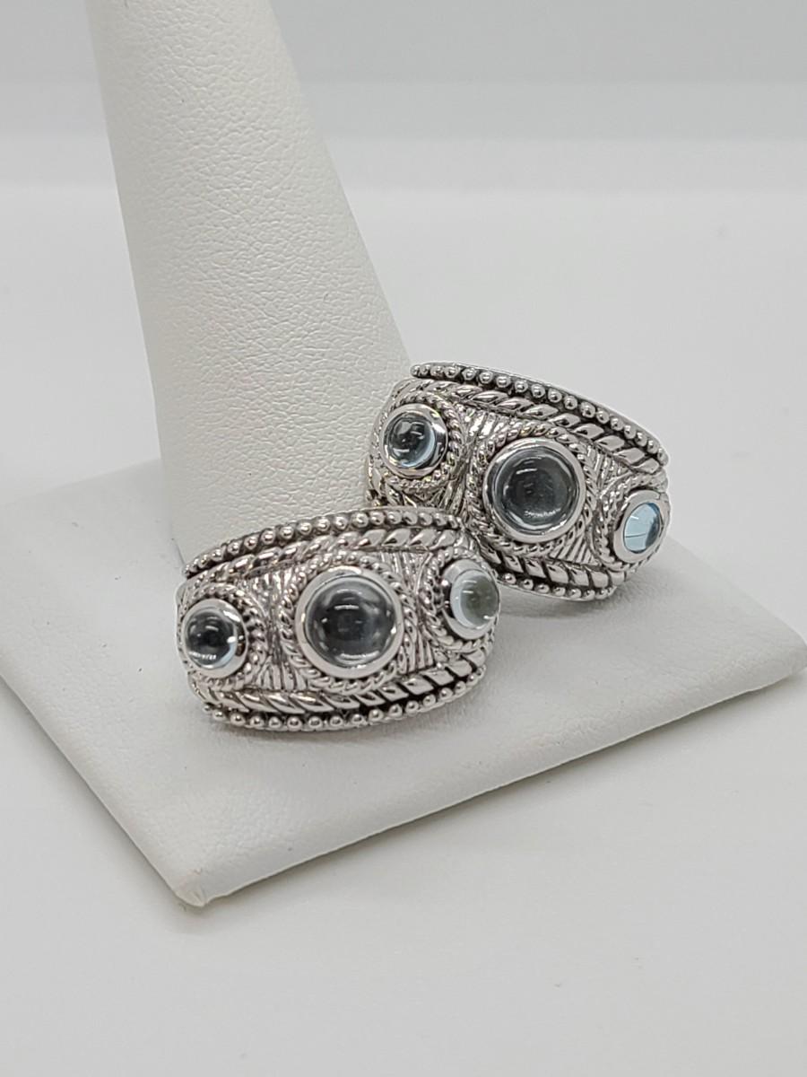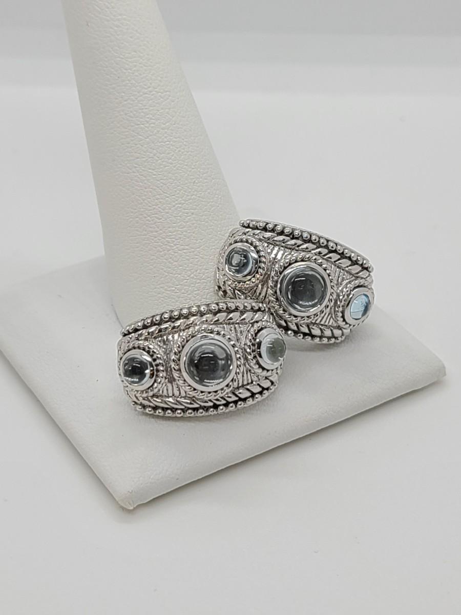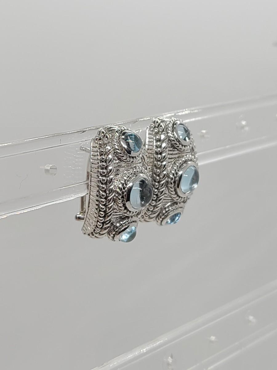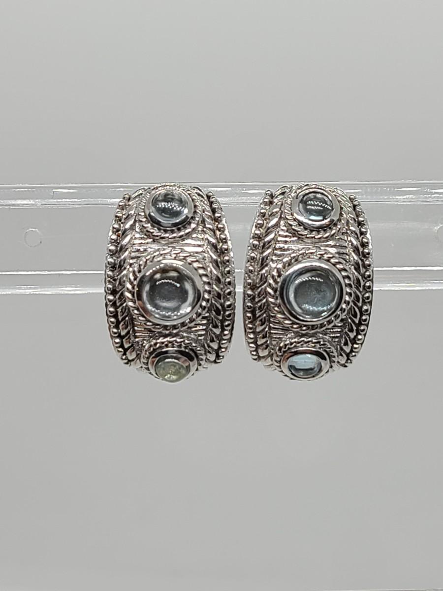 Lovely pair of Judith Ripka 925 Sterling silver and blue topaz cabachon pierced earrings. Great gift!