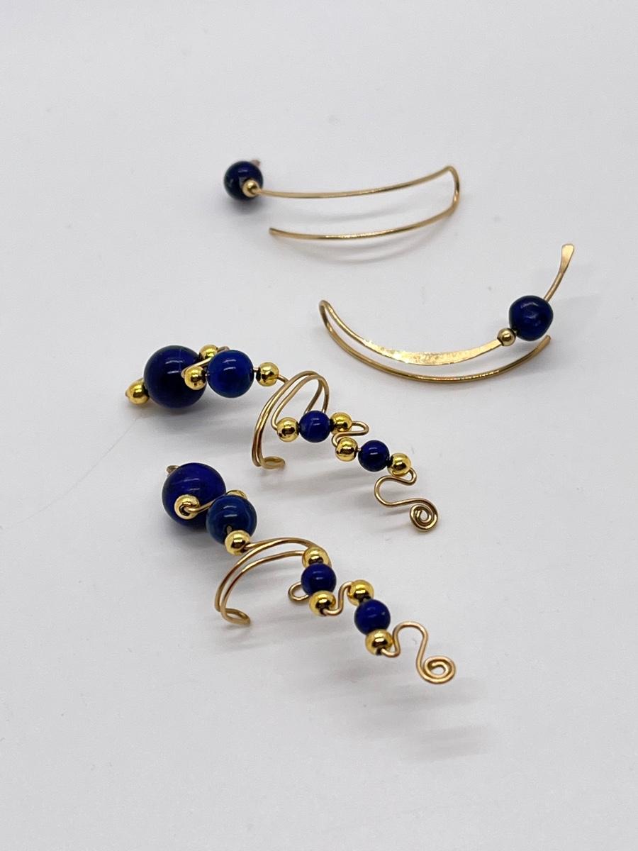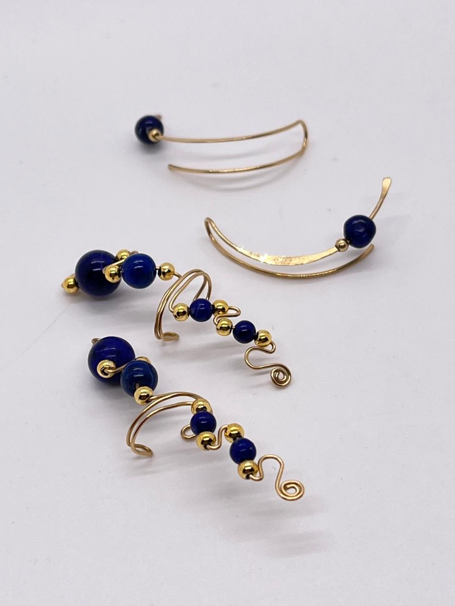 LOT 39: Pierced Earrings & Outer Ear Clips - Goldfill and Blue Lapis