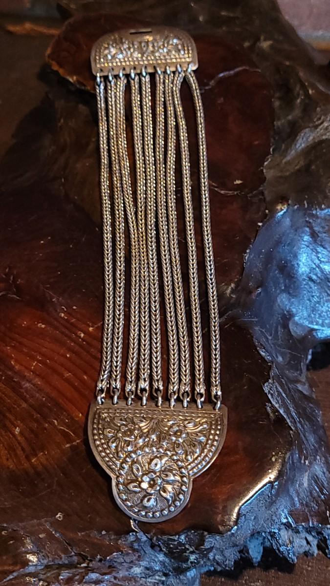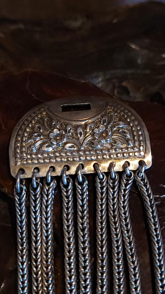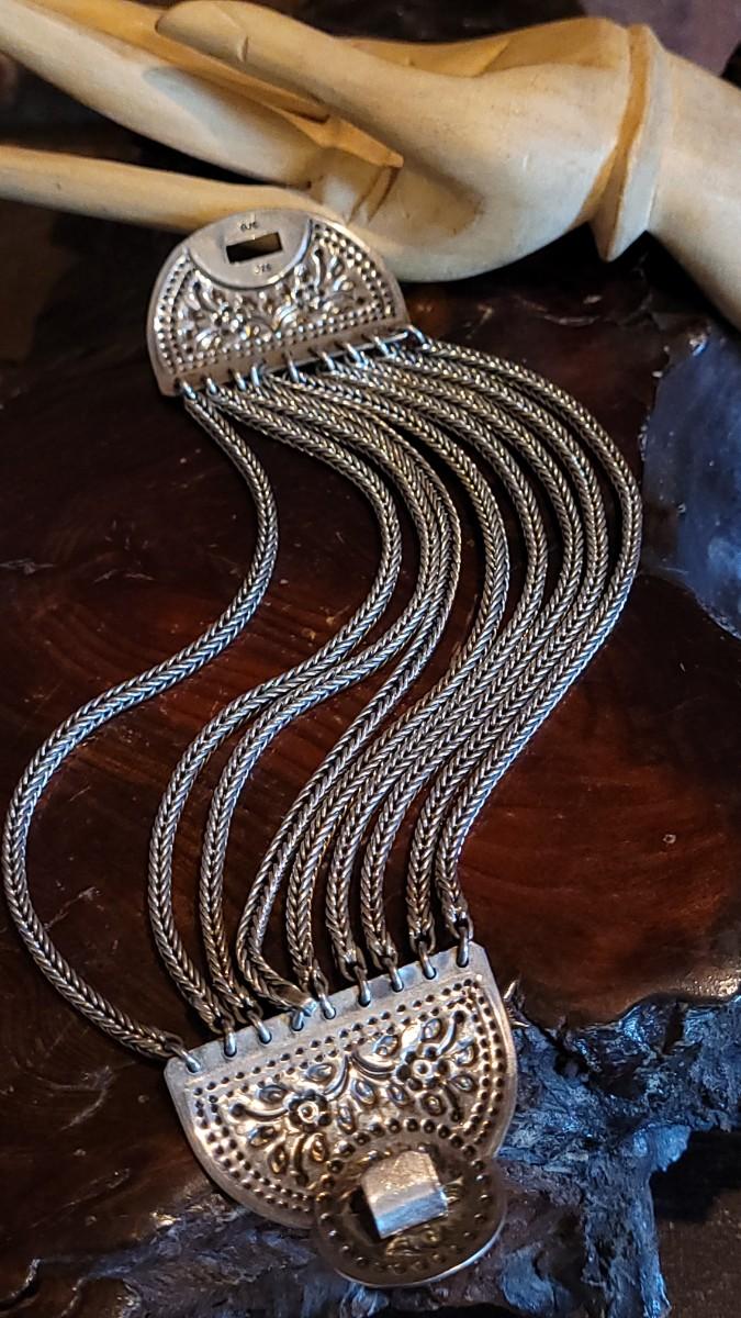 Lot 39: Sterling Silver Multi Chain Repousse Clasp Bracelet