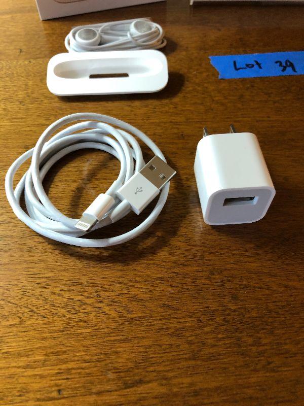 Assorted Accessories including, Cable, Brick, Air Pods (Wired) and iPhone Box.