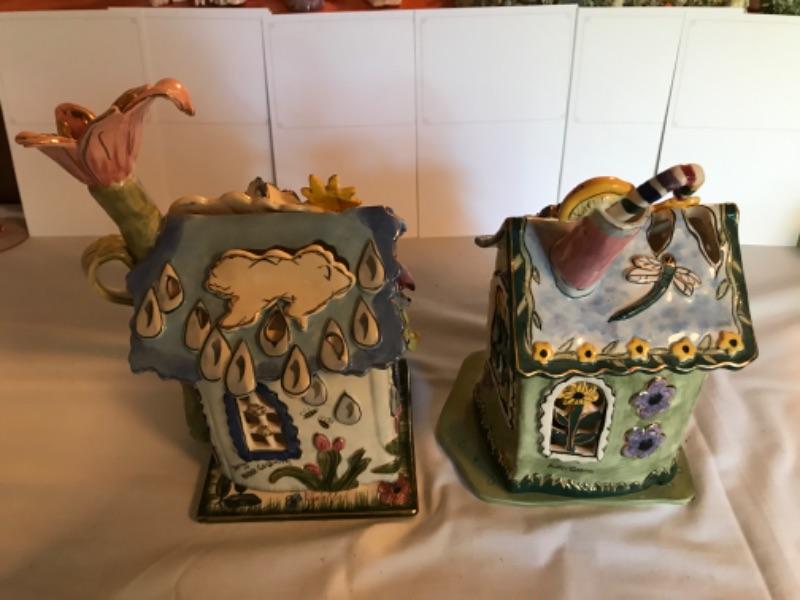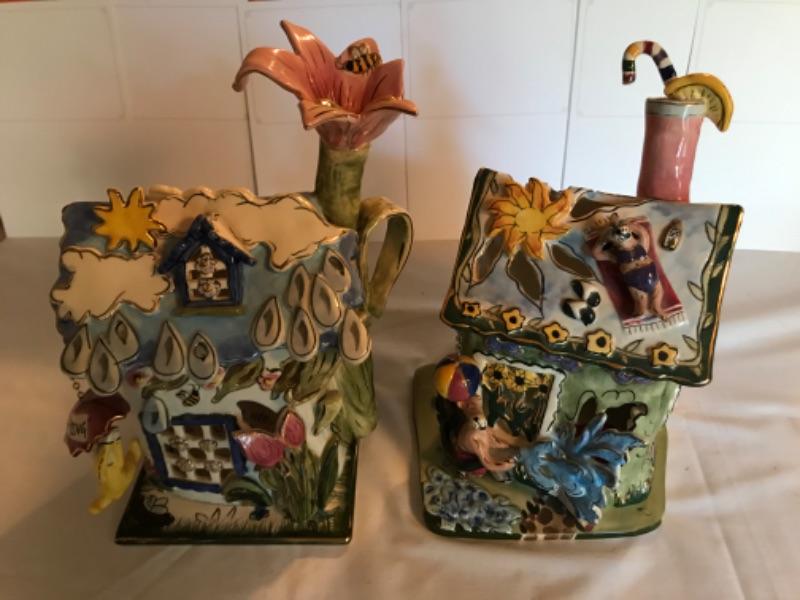 Seasonal houses. Summer 10-1/4” tall. Spring 10-1/4” tall. Signed Heather Goldminc
