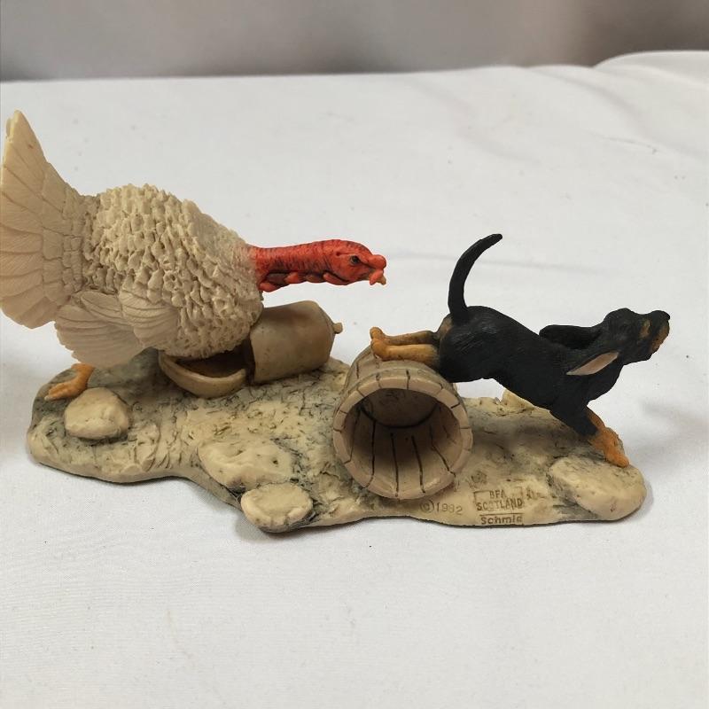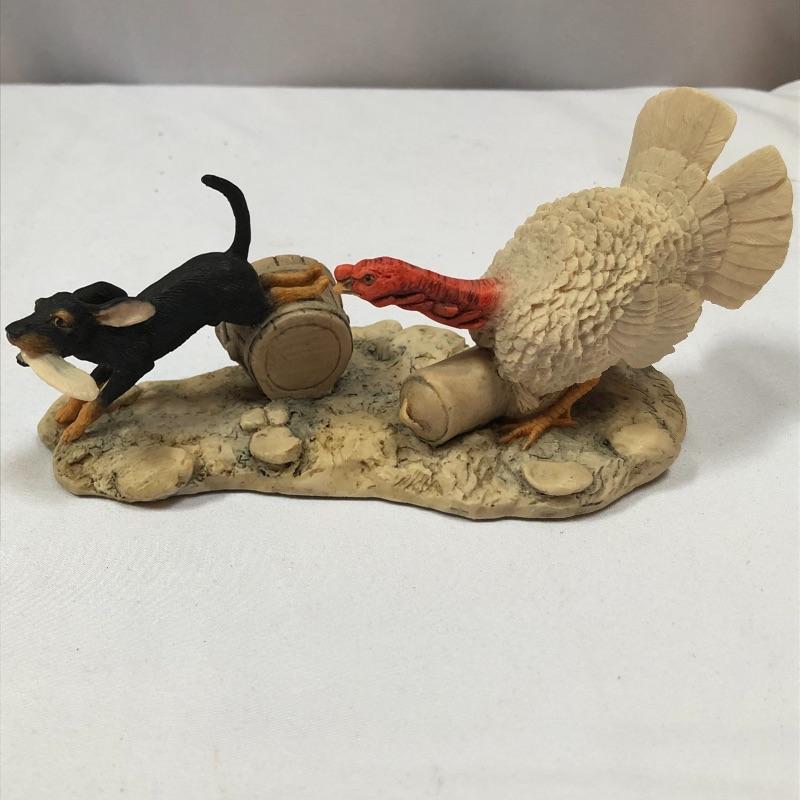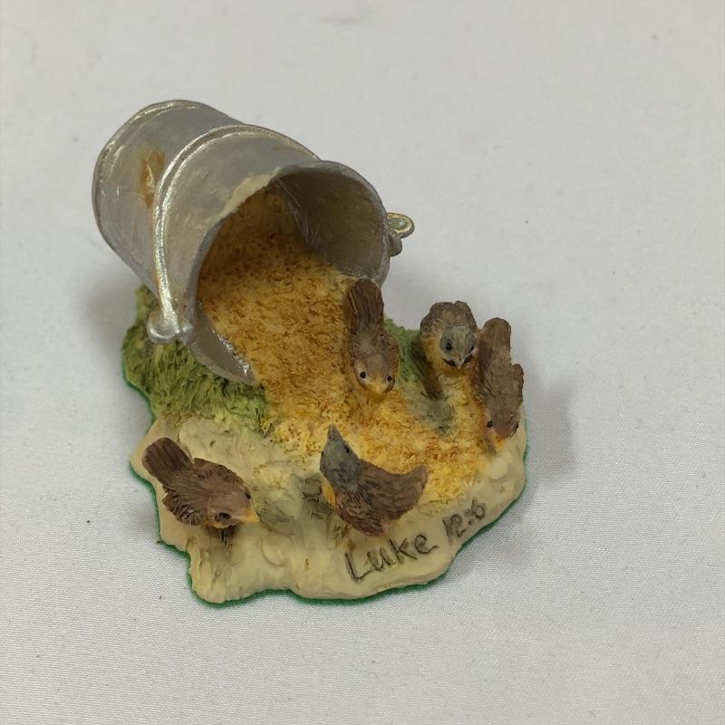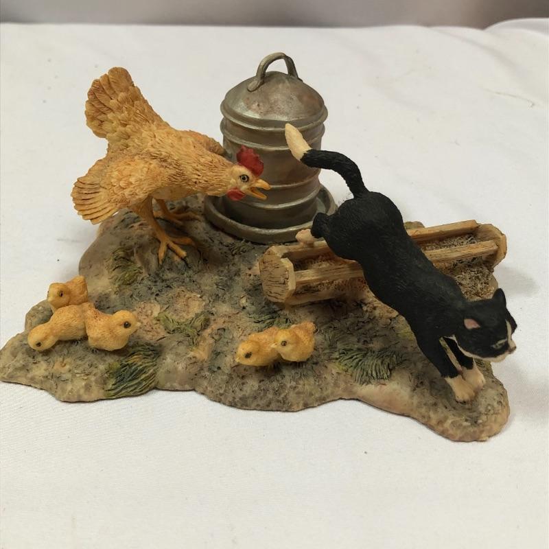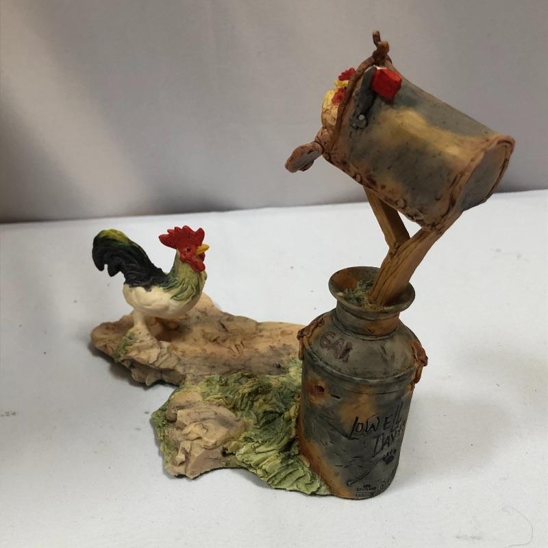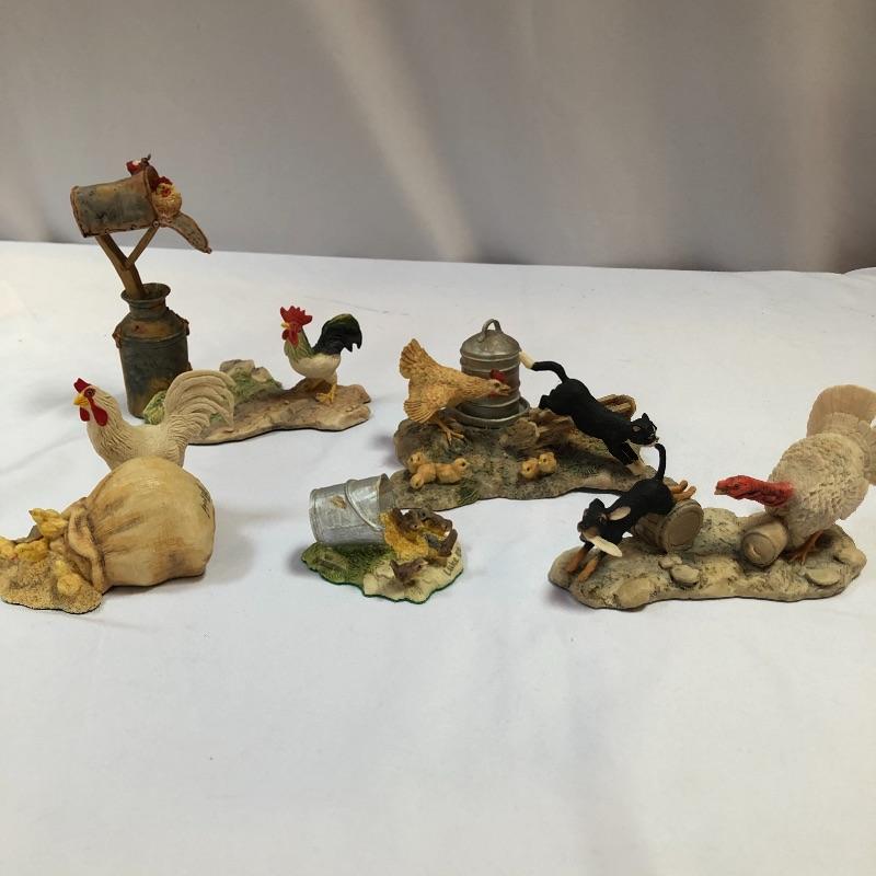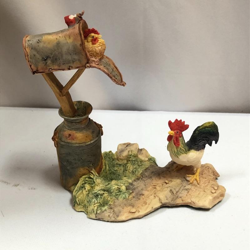Lots of farmyard fun with these five not so 'fowl' figurines that are handcrafted and hand painted in Scotland. Two come with boxes that includes - “Mail order bride” (6” x4” x5”) and Making tracks. See images for more information.