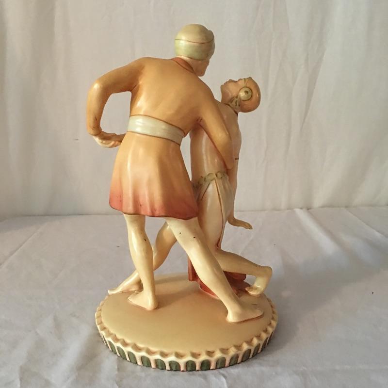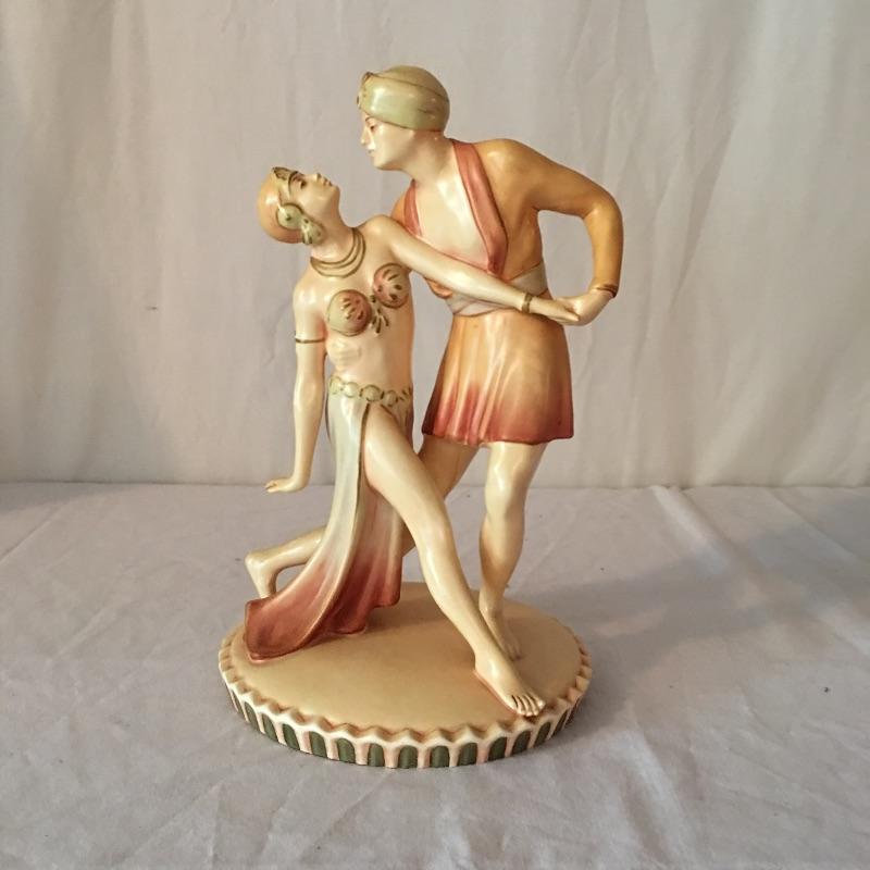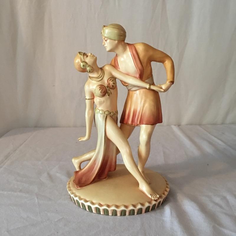 Dancing statuette made in Czechoslovakia evokes romance and harmony to be displayed anywhere you wish to add some beauty to your space. Item appears to be porcelain or some kind of ceramic.