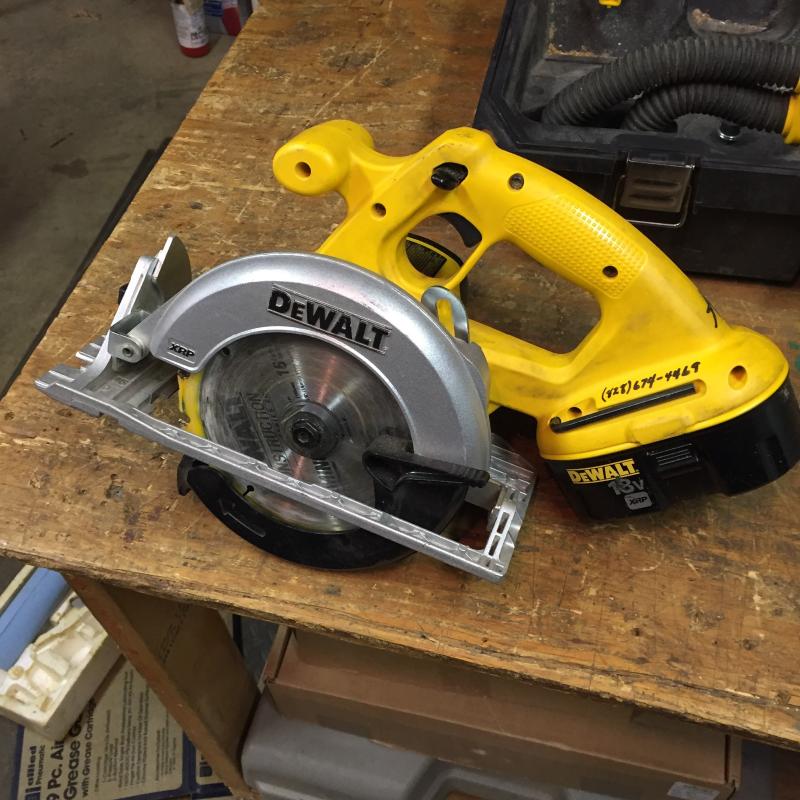 18v Dewalt tool set includes 3 Batteries and Charger. Also includes Flashlight, Circular Saw, Drill and Reciprocating Saw. All in same case. Lot is available for local pick up in Horseshoe, NC only.