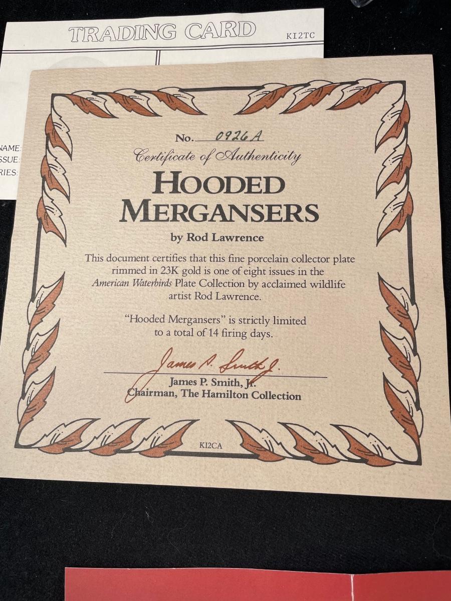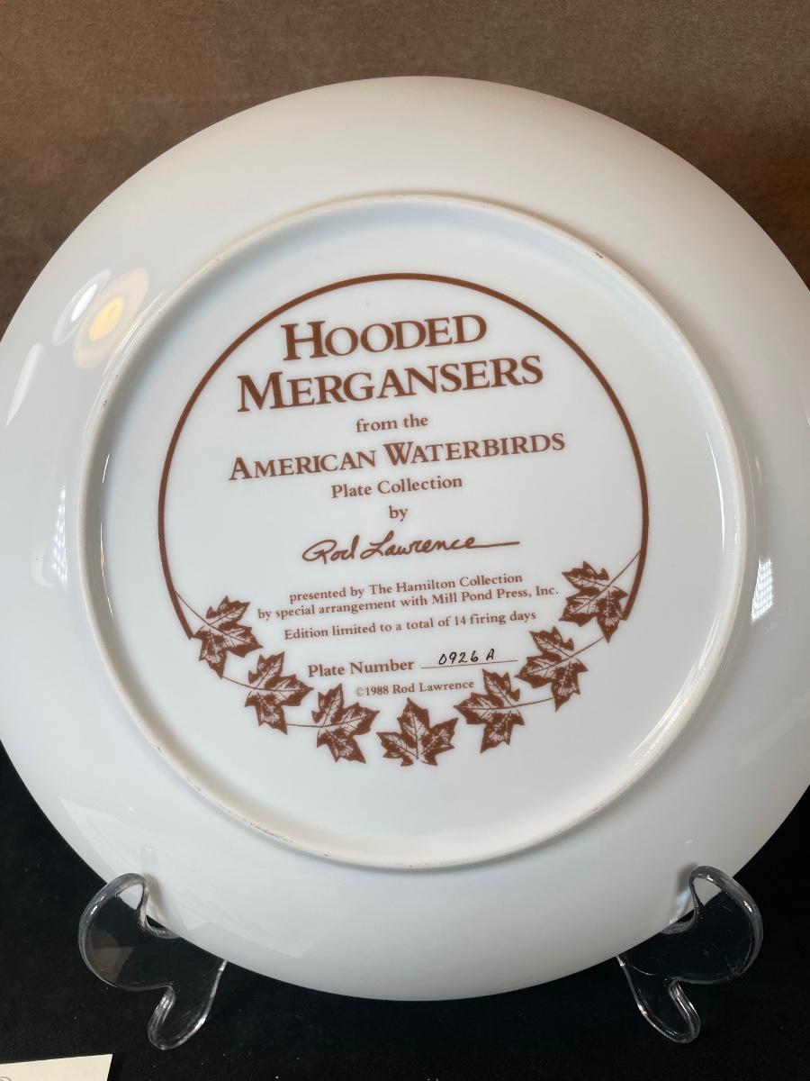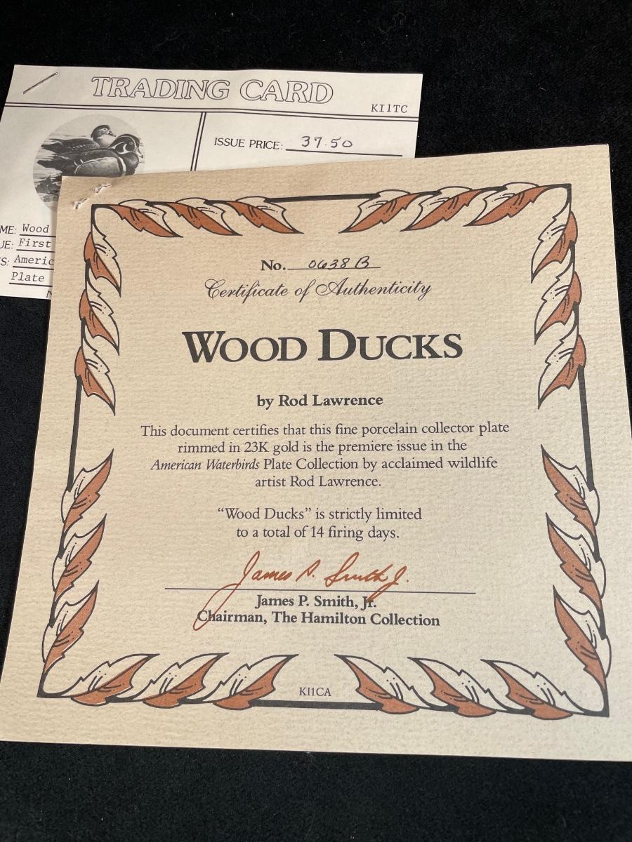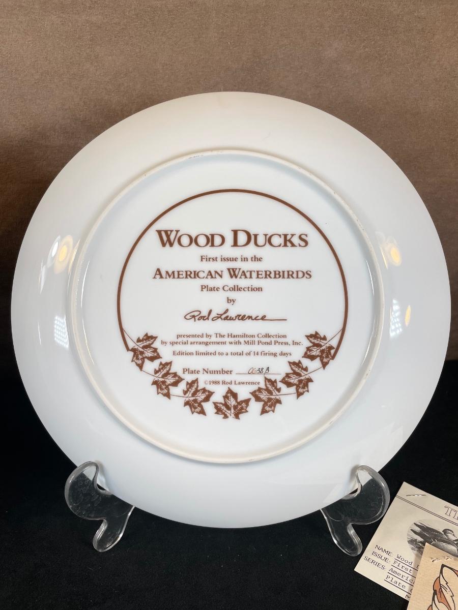 Resin Duck Figure and two collectible plats from the Hamilton Collection "American Waterbirds" by Rod Lawrence with Certificates of Authenticity