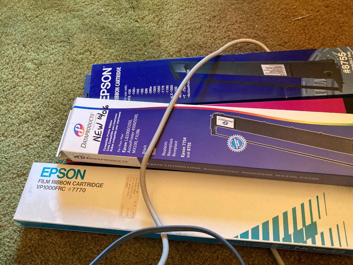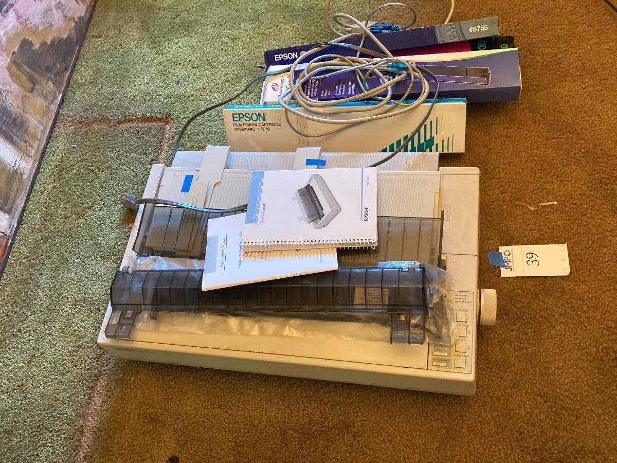 Epson large format printer. LQ-1050 with extra ribbon cartridges. Includes user manual, all paper guides and cables.