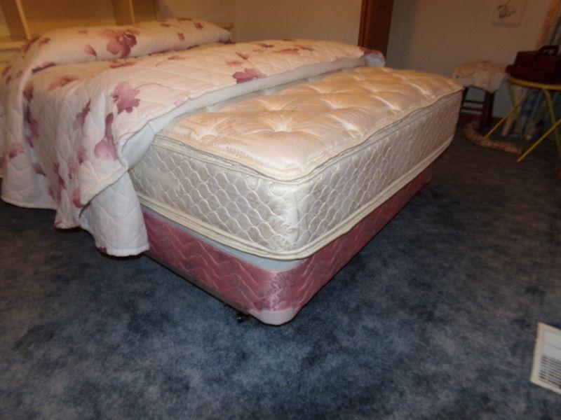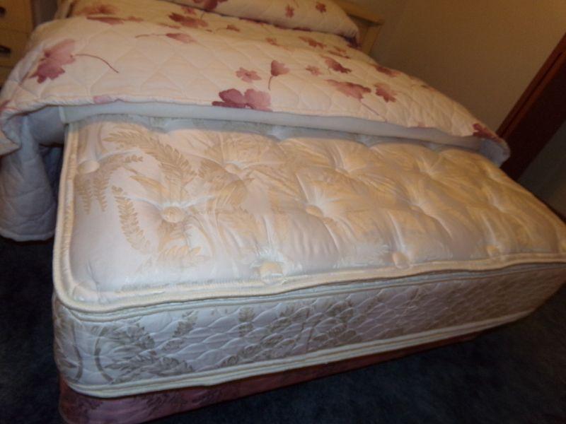 INCLUDES NEWER CLEAN PILLOWTOP MATTRESS.  THE BOXSPRING DOES NOT MATCH.  BEDDING INCLUDED