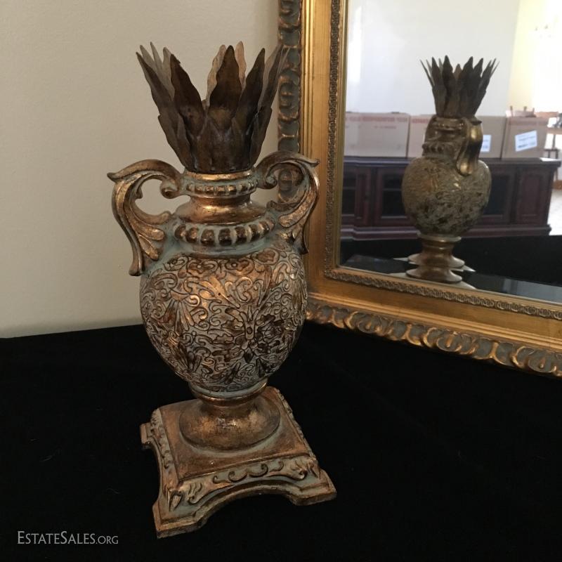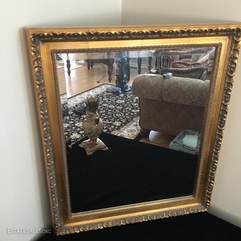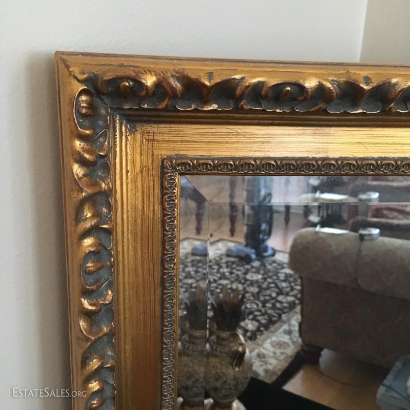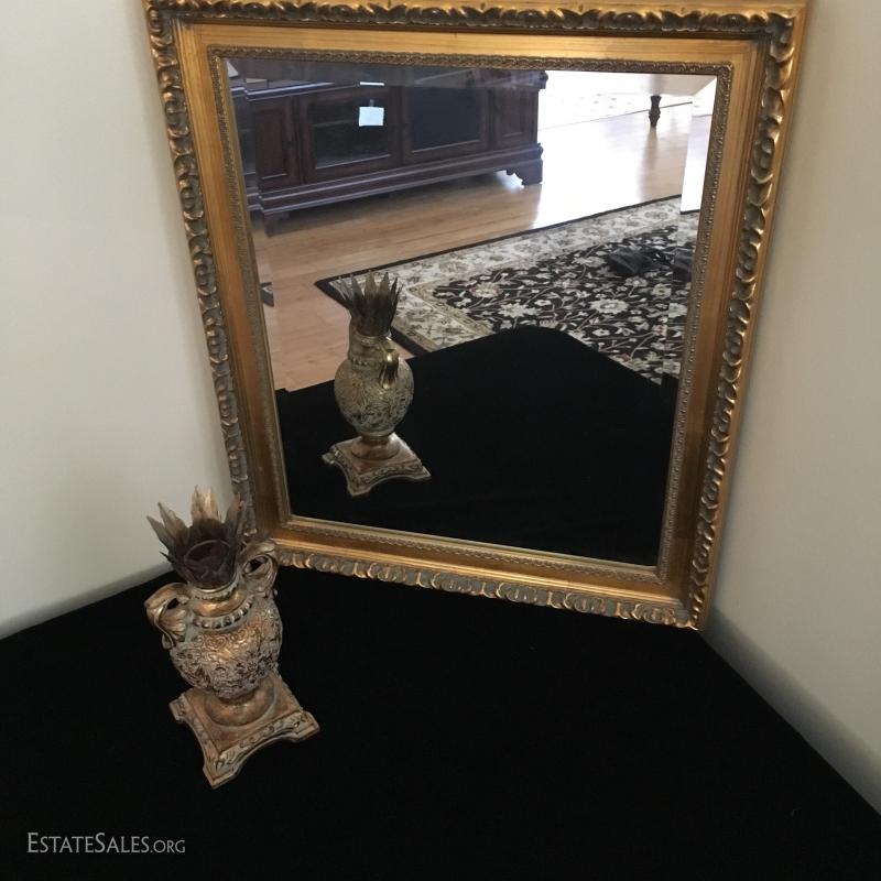 Mirror is beveled and measures 26.5" x 22". Candle holder stands 12" tall. This lot is available for local pick up in Mills River, NC only.