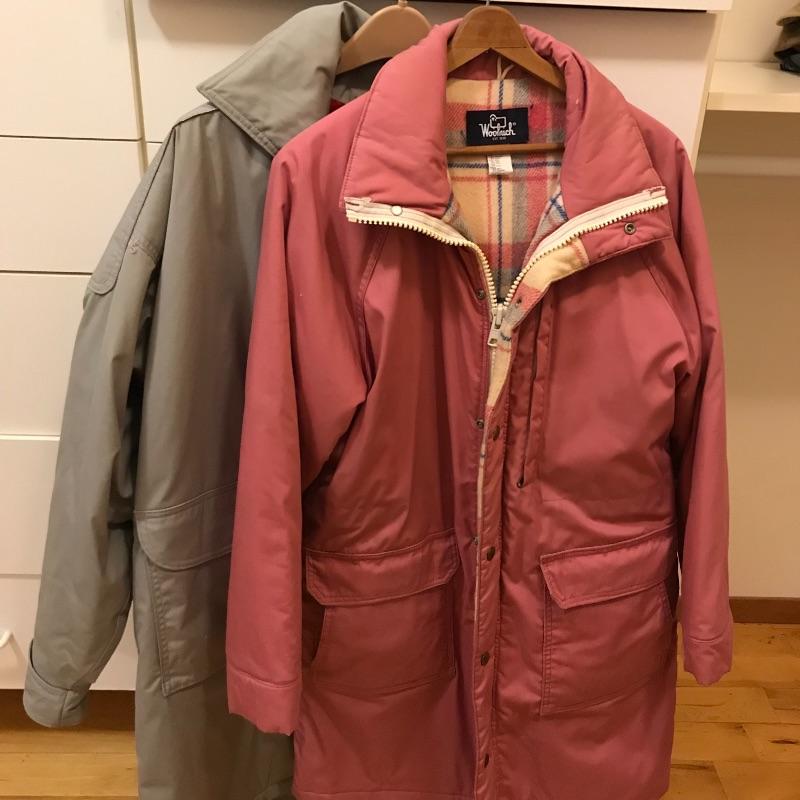 Lot includes two Woolrich coats in good condition. Women’s is a warm pinkish-mauve, size L and men’s is a light gray, size XL. Both are wool-lined. See pics. Shipping available.