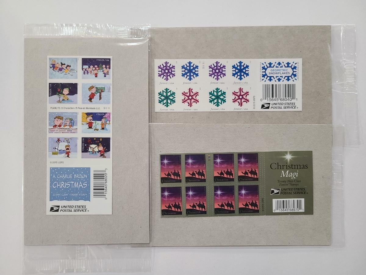 Lot 39: Holiday Forever Stamps (Charlie Brown, Magi, and Geometric Snowflakes) $34.80