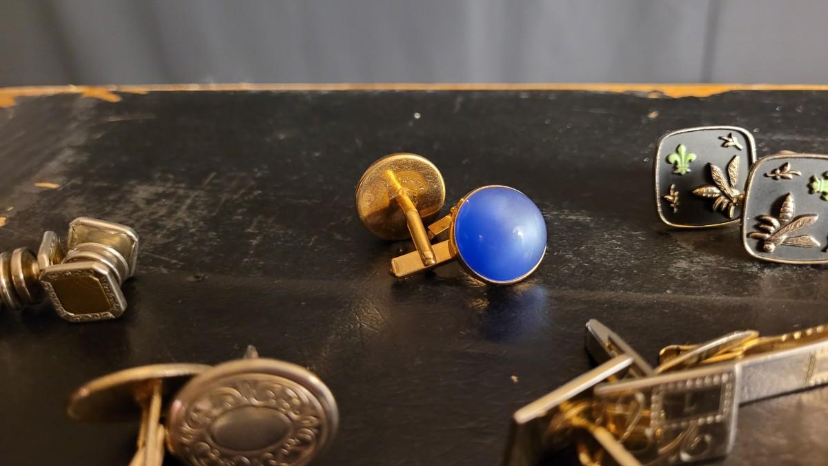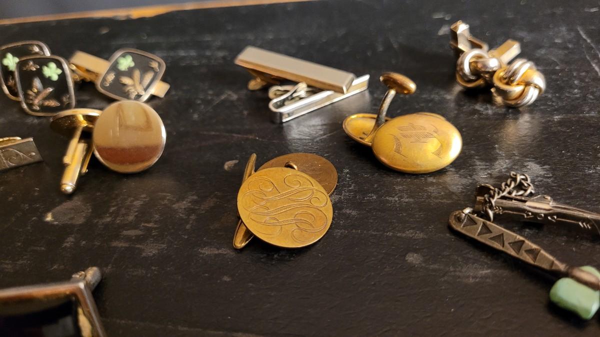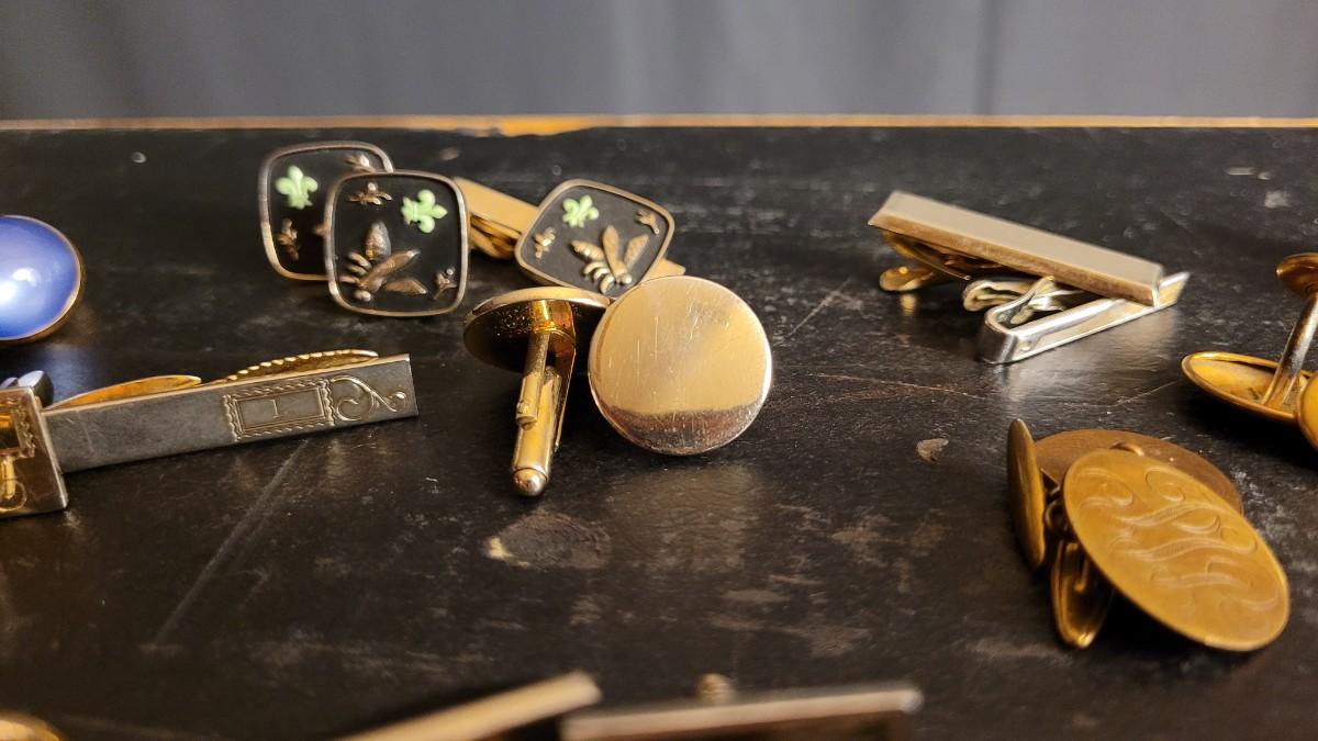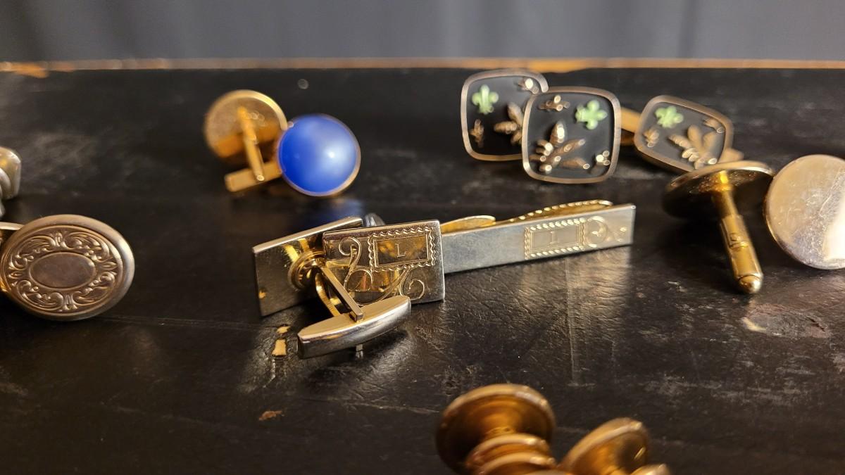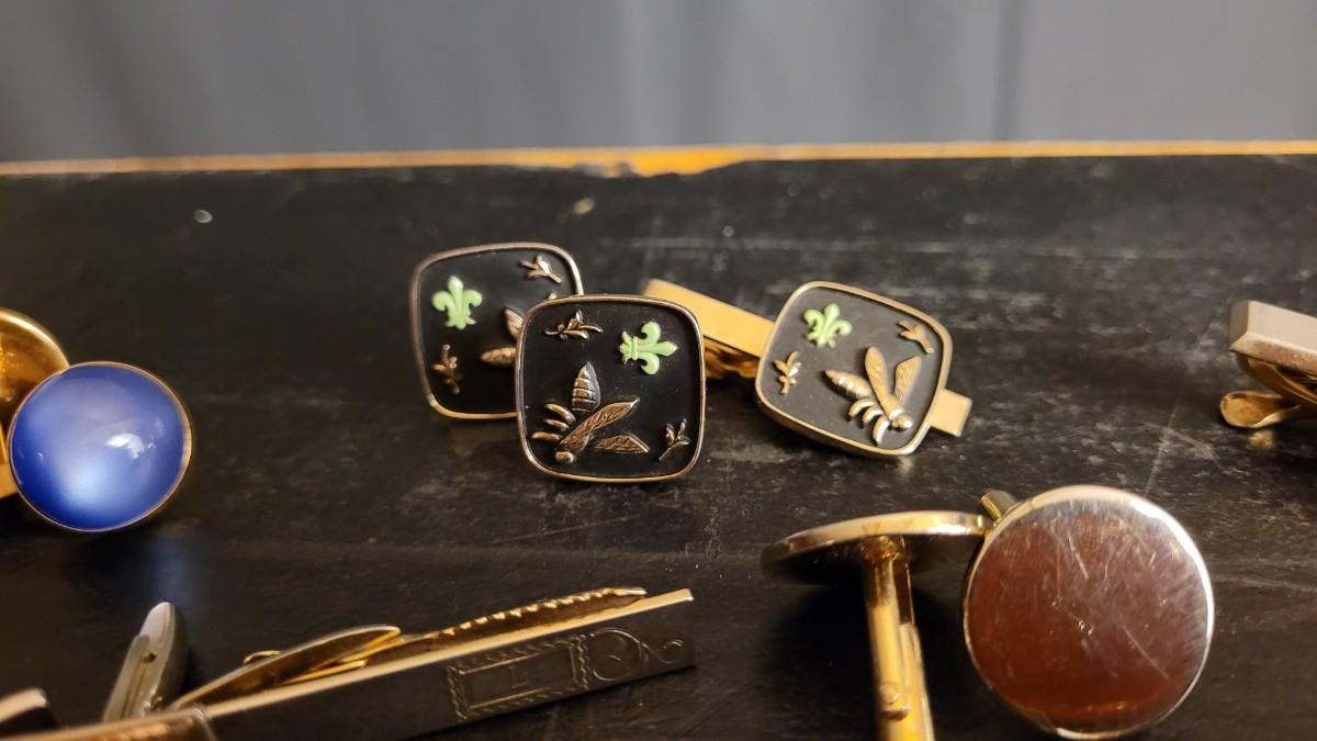Lot 39: Huge Assortment of Fine Jewelry Fashion Cufflinks and Tie Bars Mid Century Modern